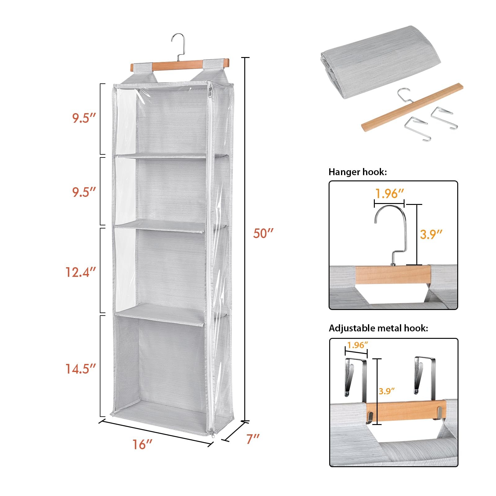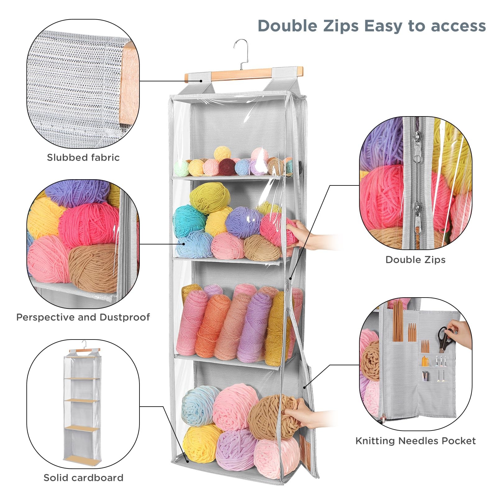Hanging Yarn Storage Organizer with 4 Large Clear Pockets, Clear Knitting Sto...