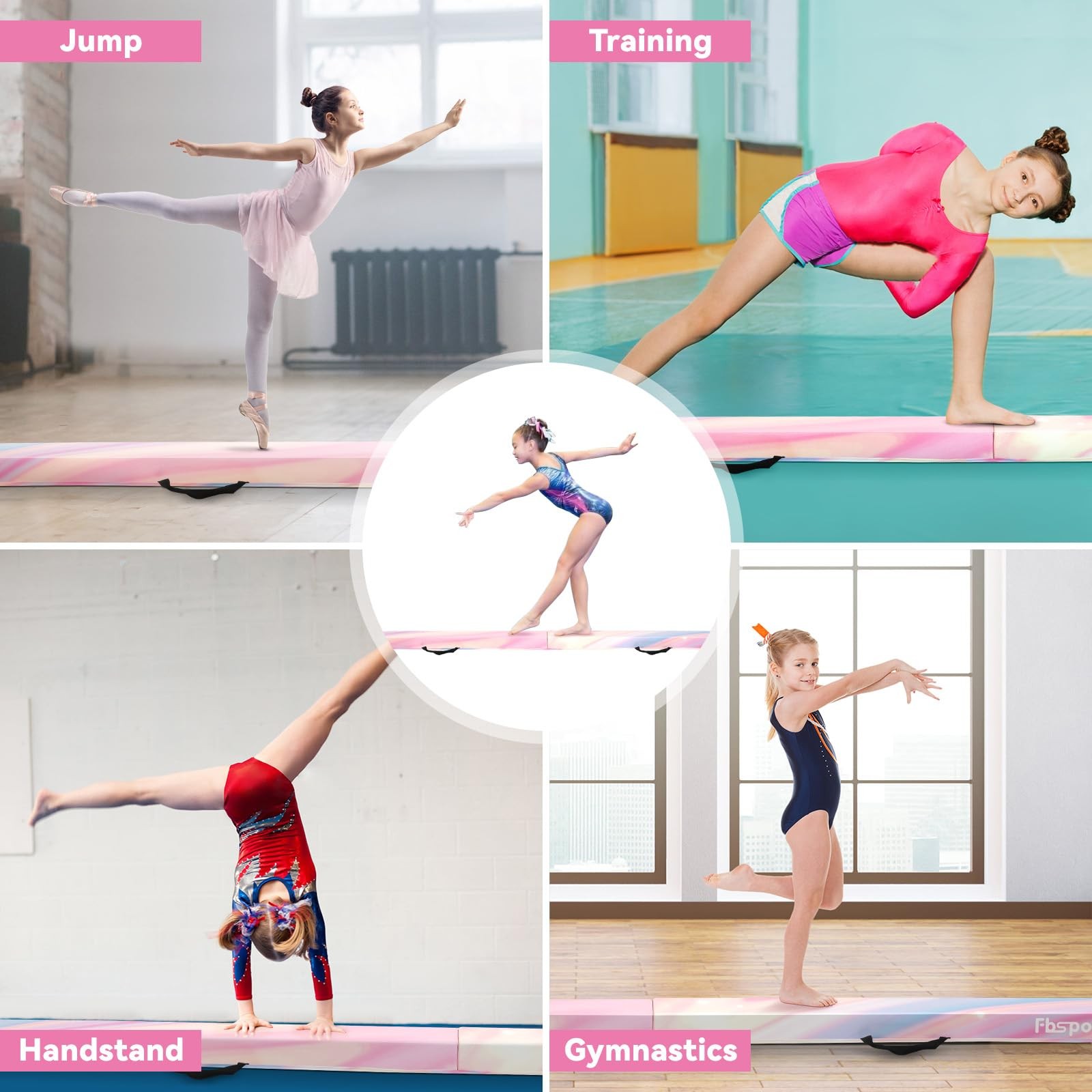 8ft Balance Beam: Folding Floor Gymnastics Equipment PU Leather for Kids Adul...