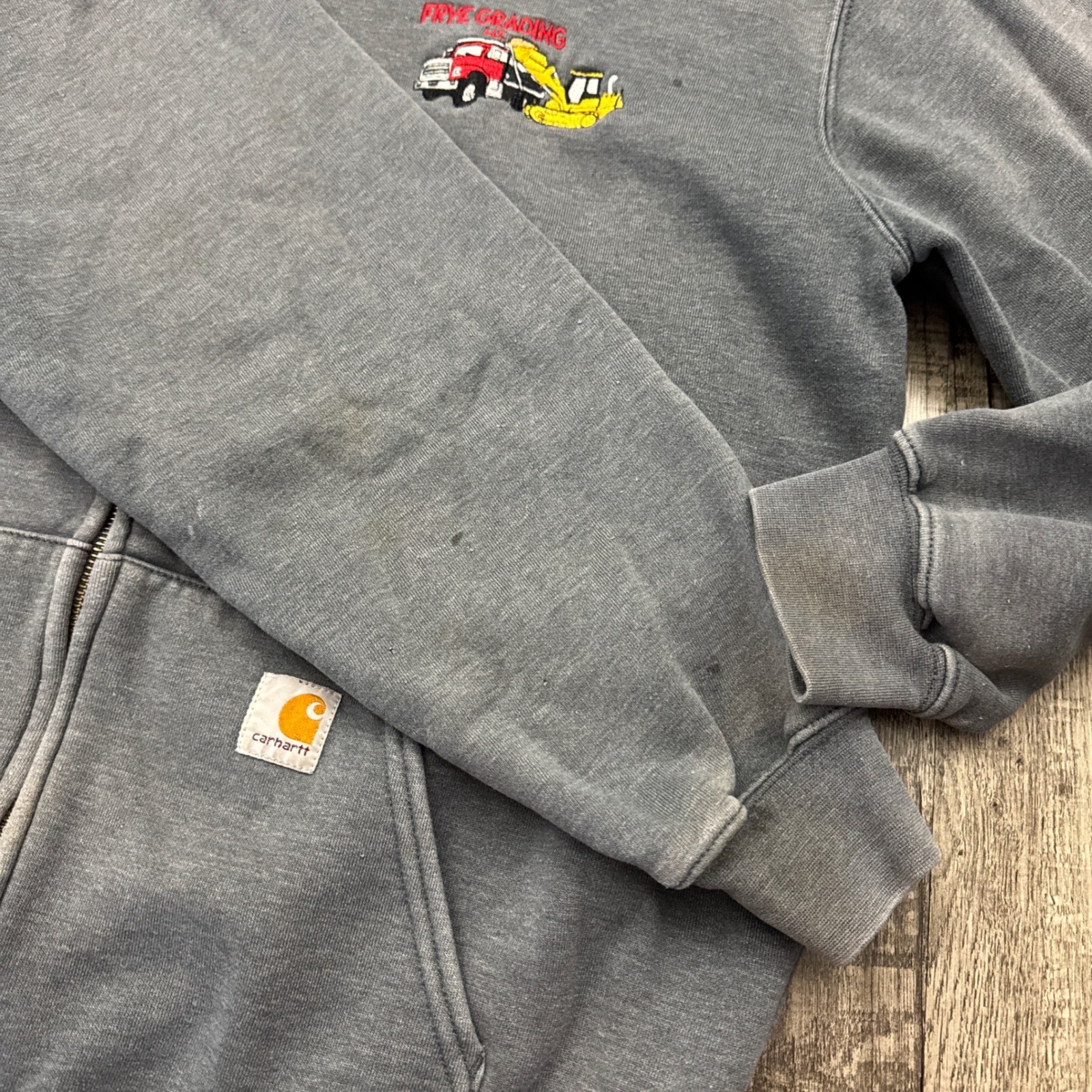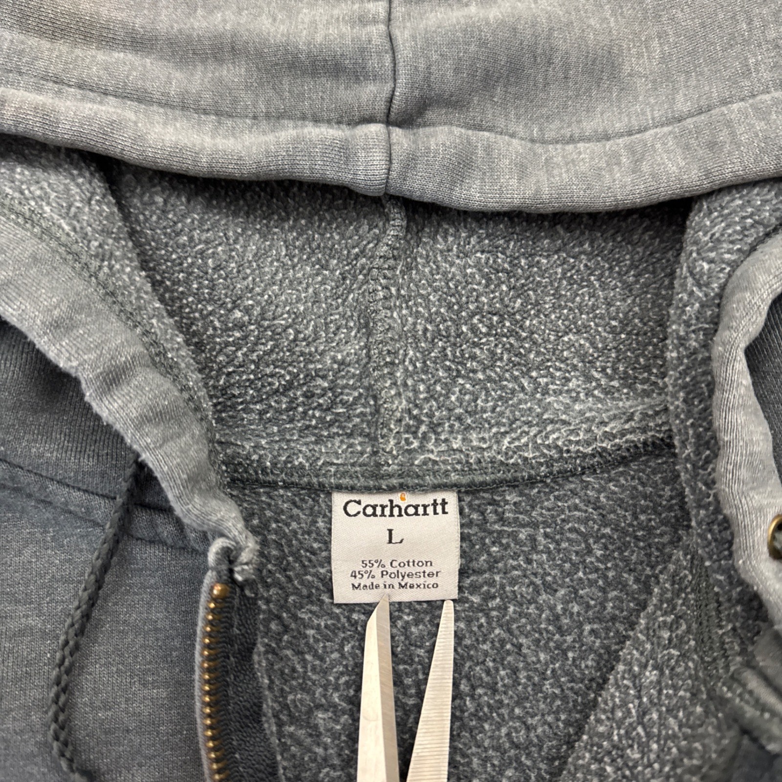 Vintage Y2K Grey Carhartt Zip Hoodie Distressed Sz L