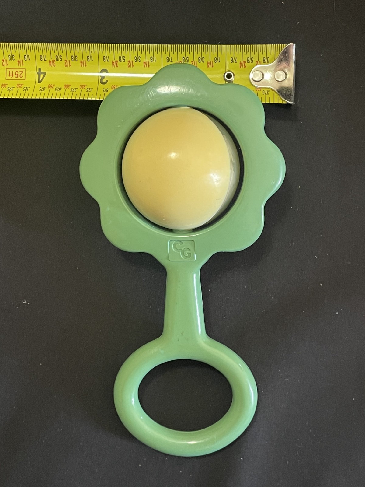 как выглядит Vintage green Plastic Spinning Head Baby Rattle Toy 1982 CG CBS inc. HK фото
