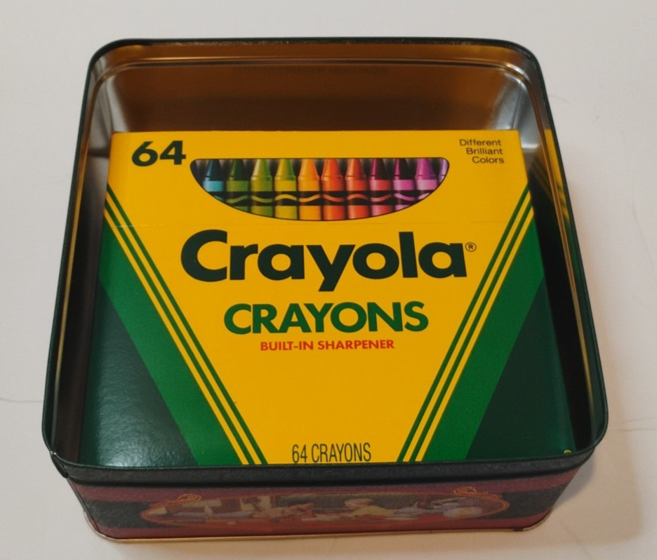 как выглядит 1994 Crayola Trademark Tin With Crayons Made In USA NEW 64 Count Coloring Crayon фото