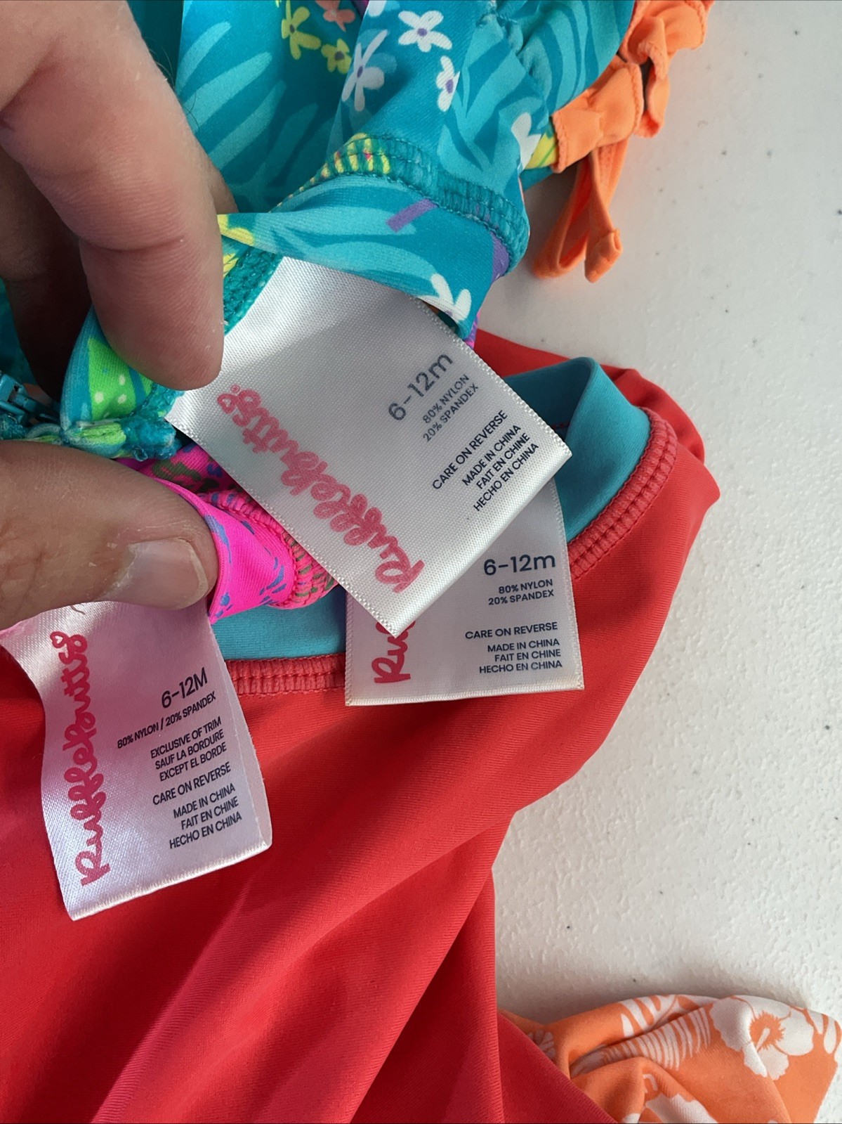 Lot of 3 RUFFLE BUTTS Swimsuit Ruffles 1pc Rash Guard 6-12 months Bright Beach