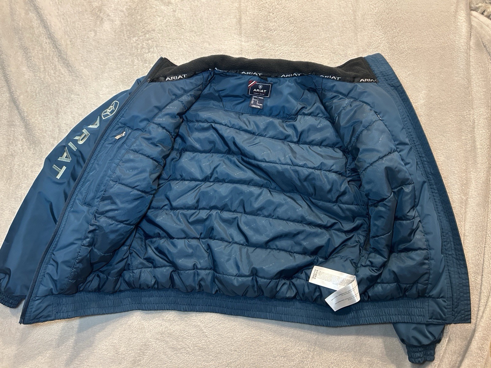 как выглядит Ariat Womens L Zip Stable Insulated Jacket Equestrian Pockets Teal Blue Green фото
