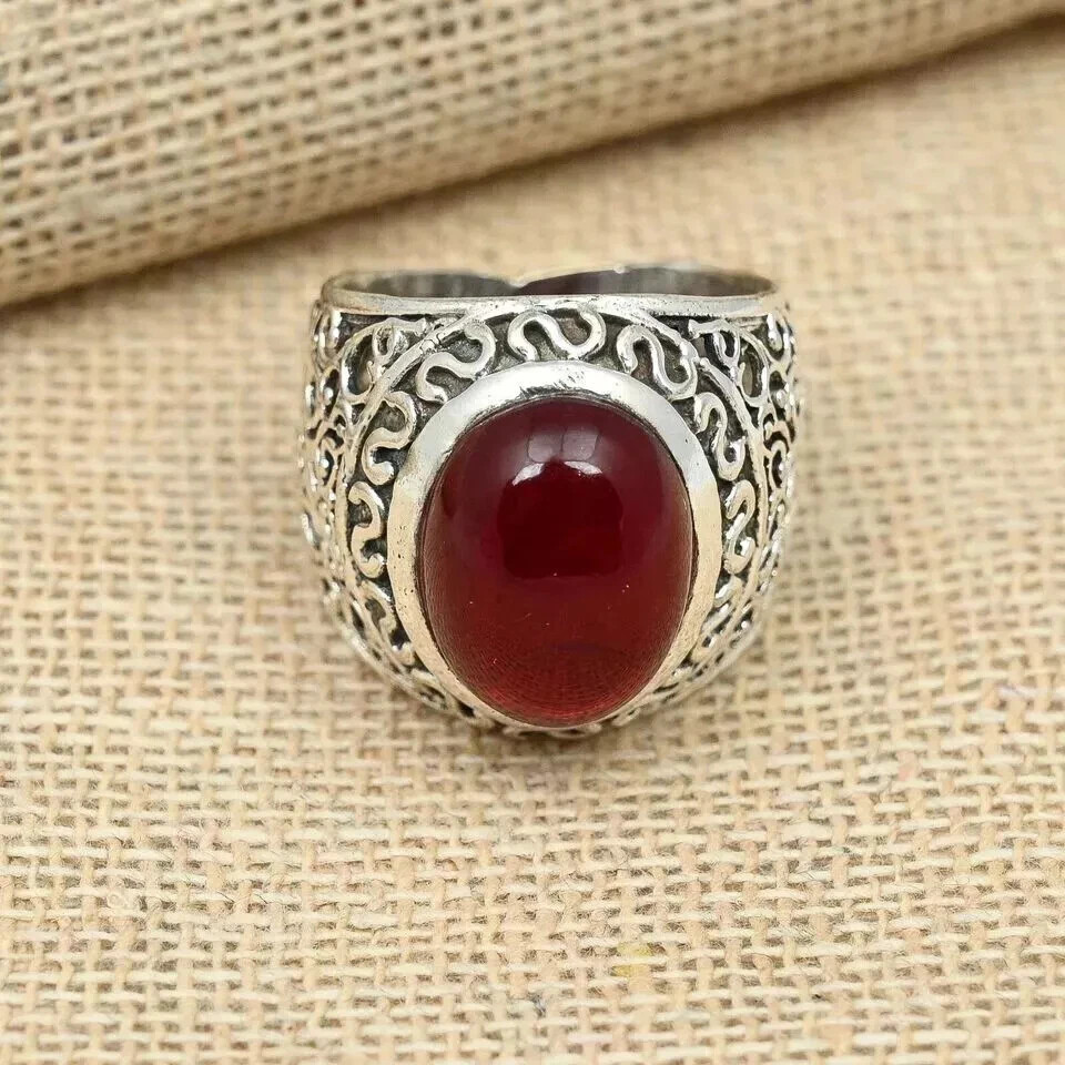 925 Sterling Silver Men's Garnet Gemstone Ring Beautiful Gift Ring All Size S26