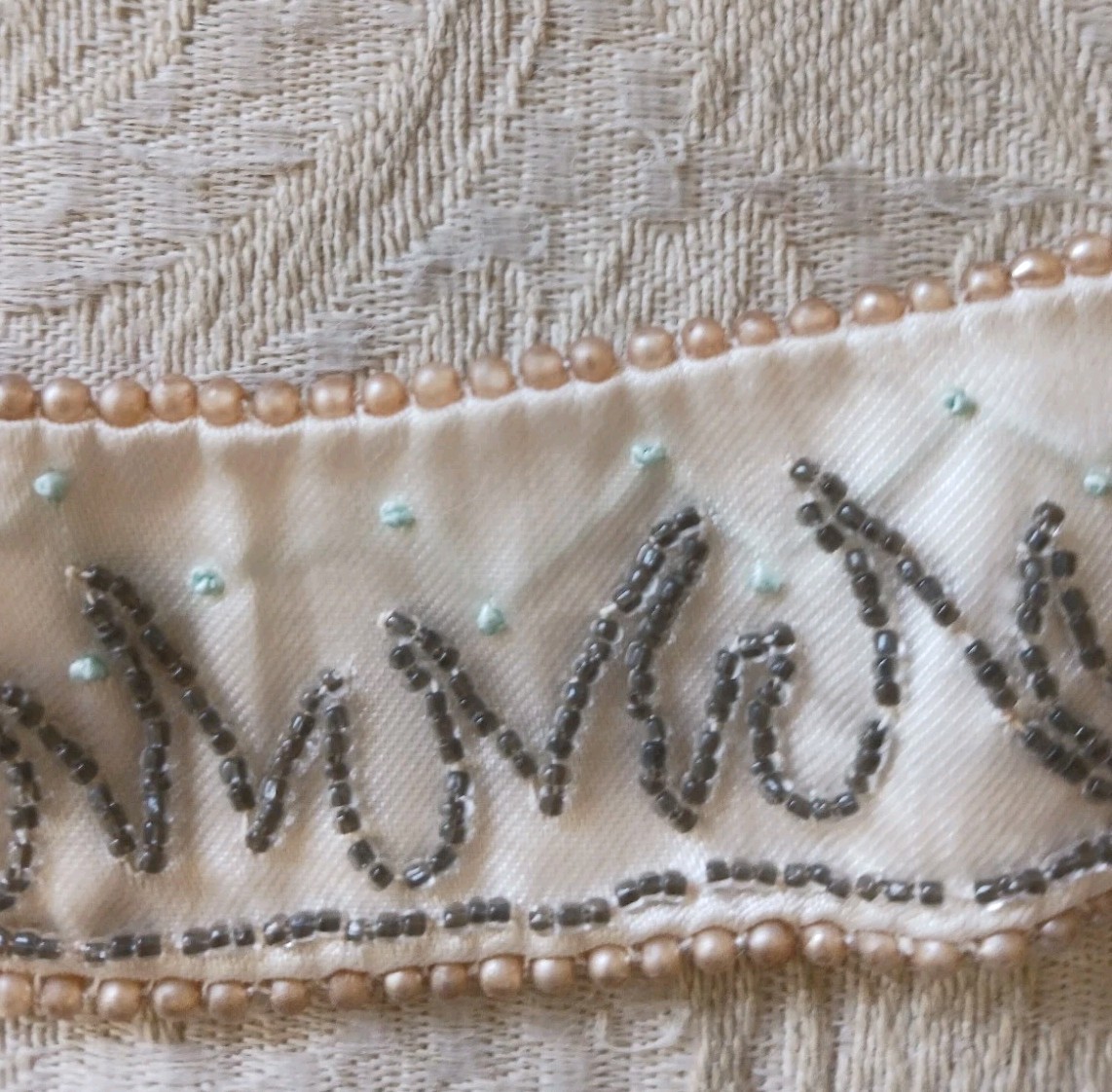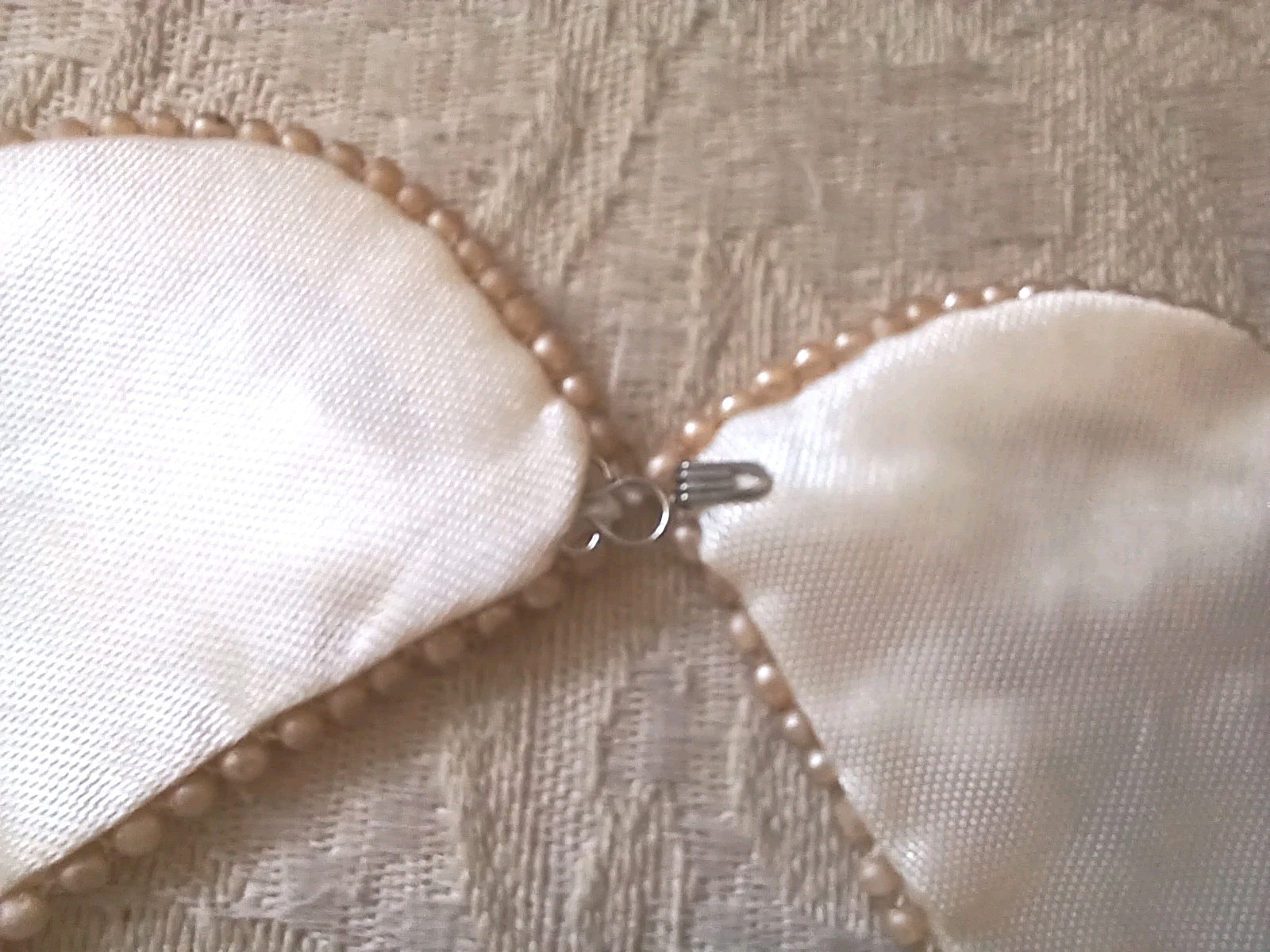 как выглядит Handmade for Segal Cream Silk Beaded Collar w Blue Gray Beads Faux Pearls фото