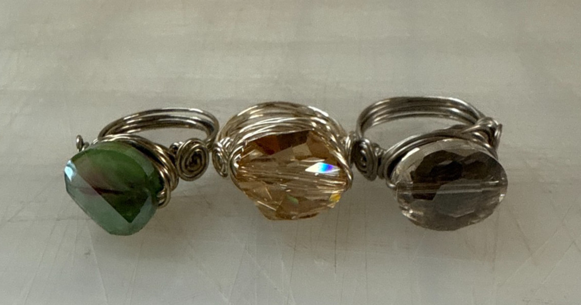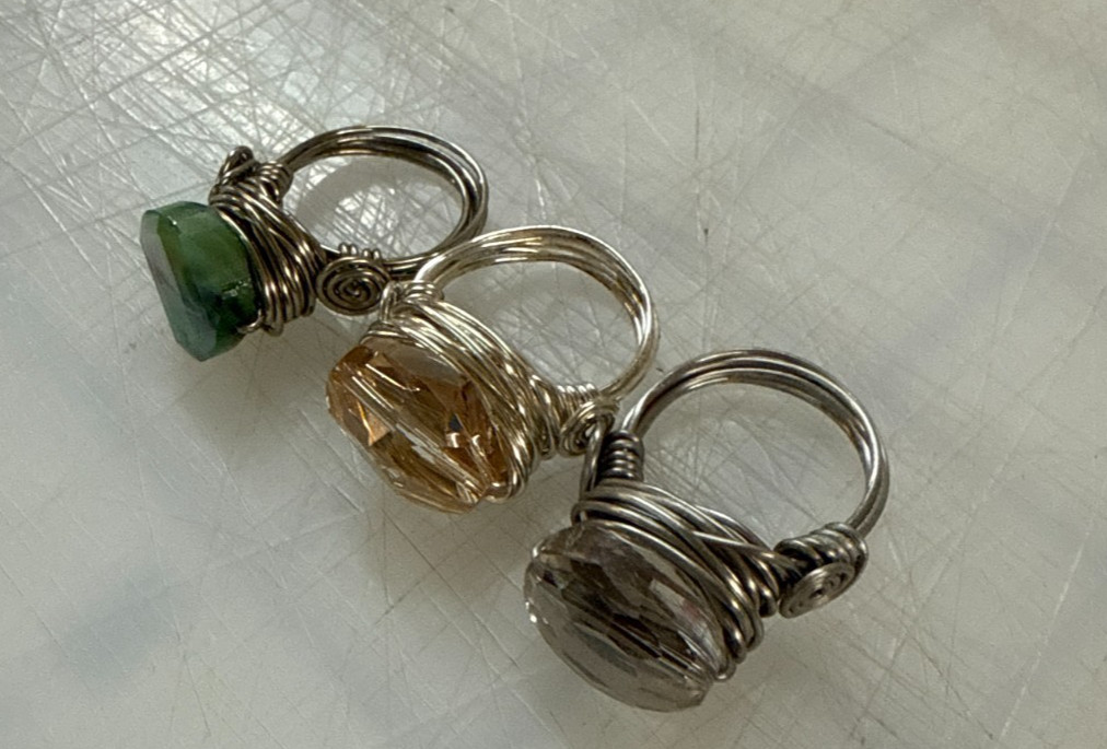 3 Total Size 8 Handmade Wire Wrapped Faceted Gemstone Fashion New Rings