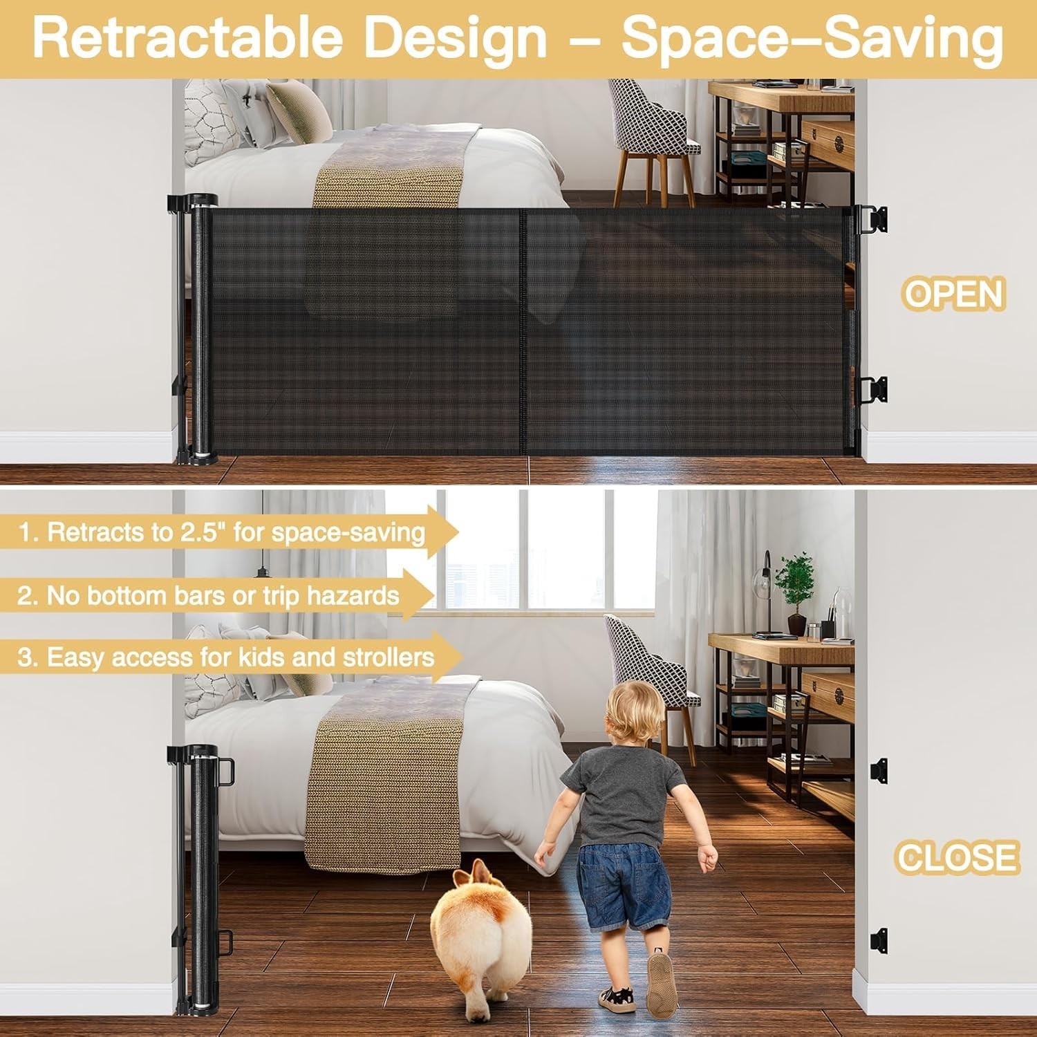 Reinforced 28-Inch Tall Retractable Baby Gates for Doorways, Walk Through Pet...