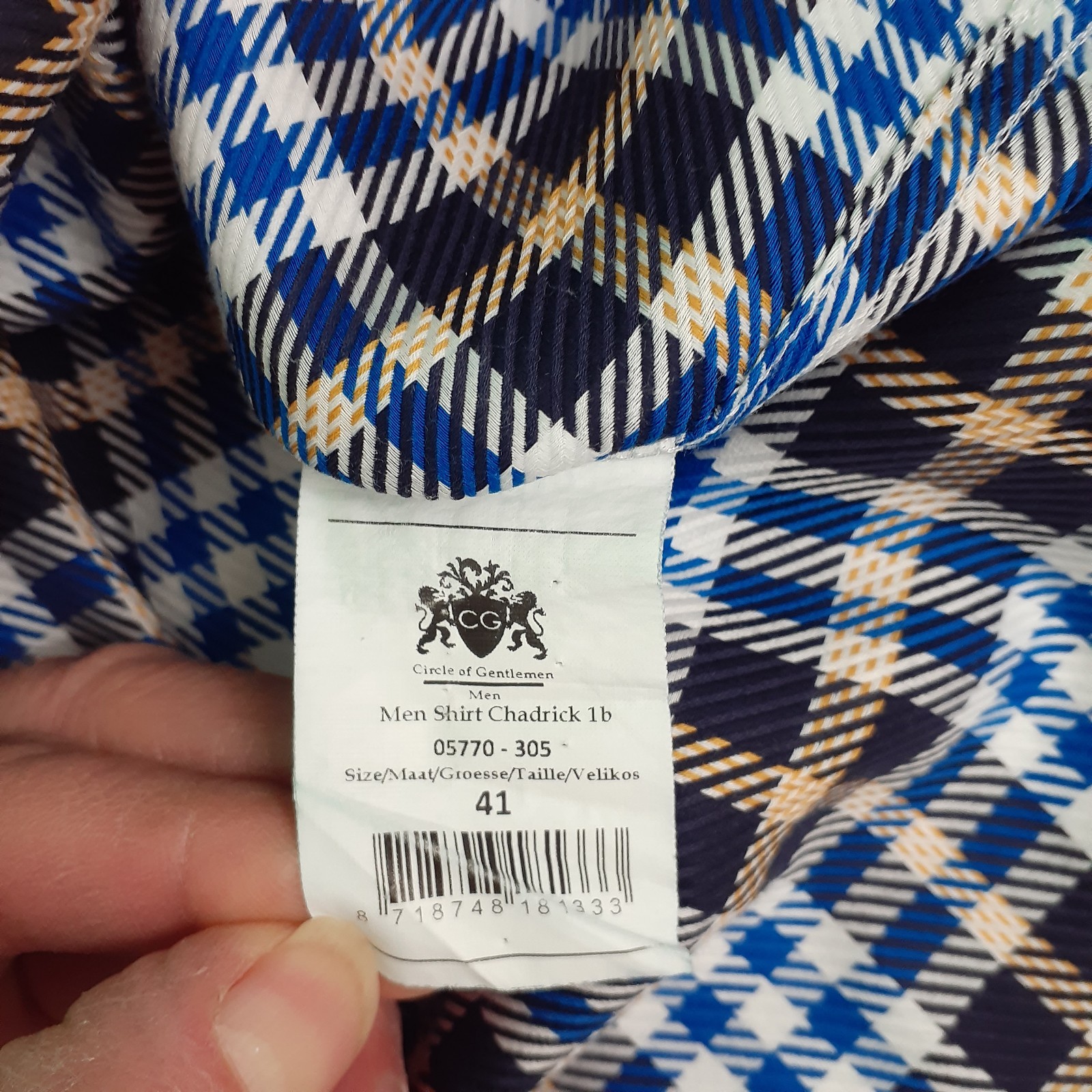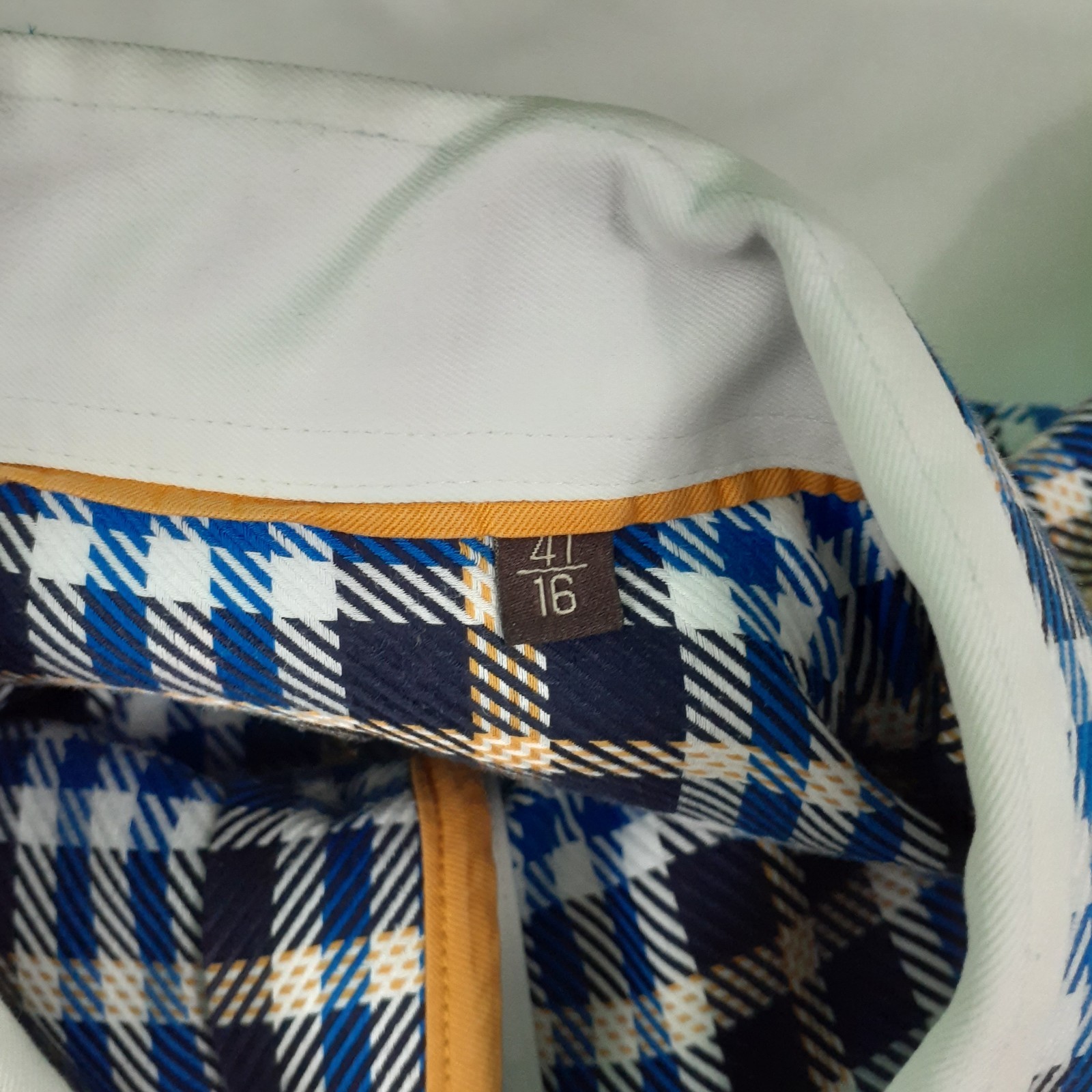 как выглядит Circle of Gentlemen Dress Shirt Men 41/16 Blue Brown Check Button Up Long Sleeve фото