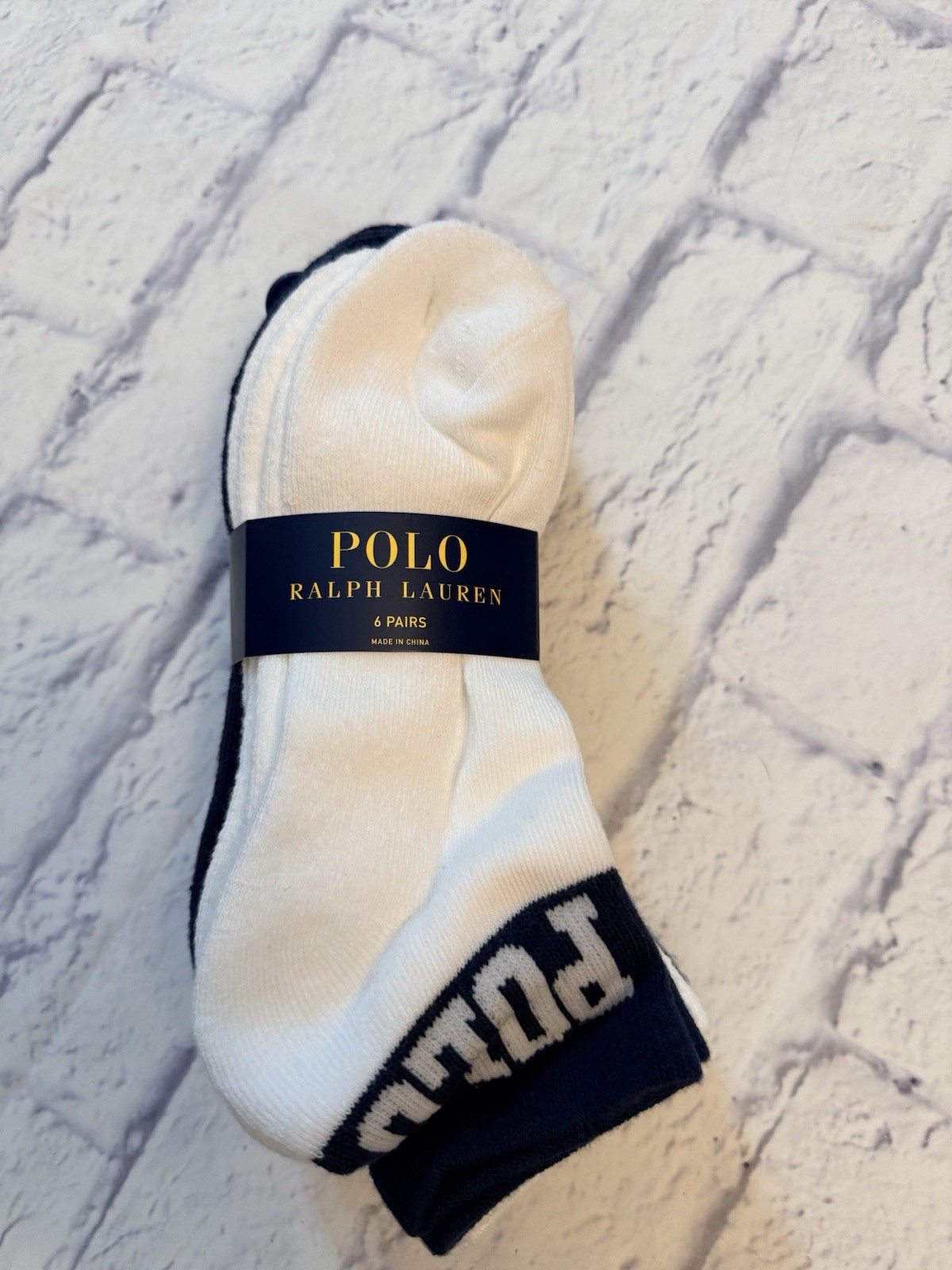 Polo Ralph Lauren Athletic 6-Pair Men's QTR Crew Socks White with Polo on Cuff