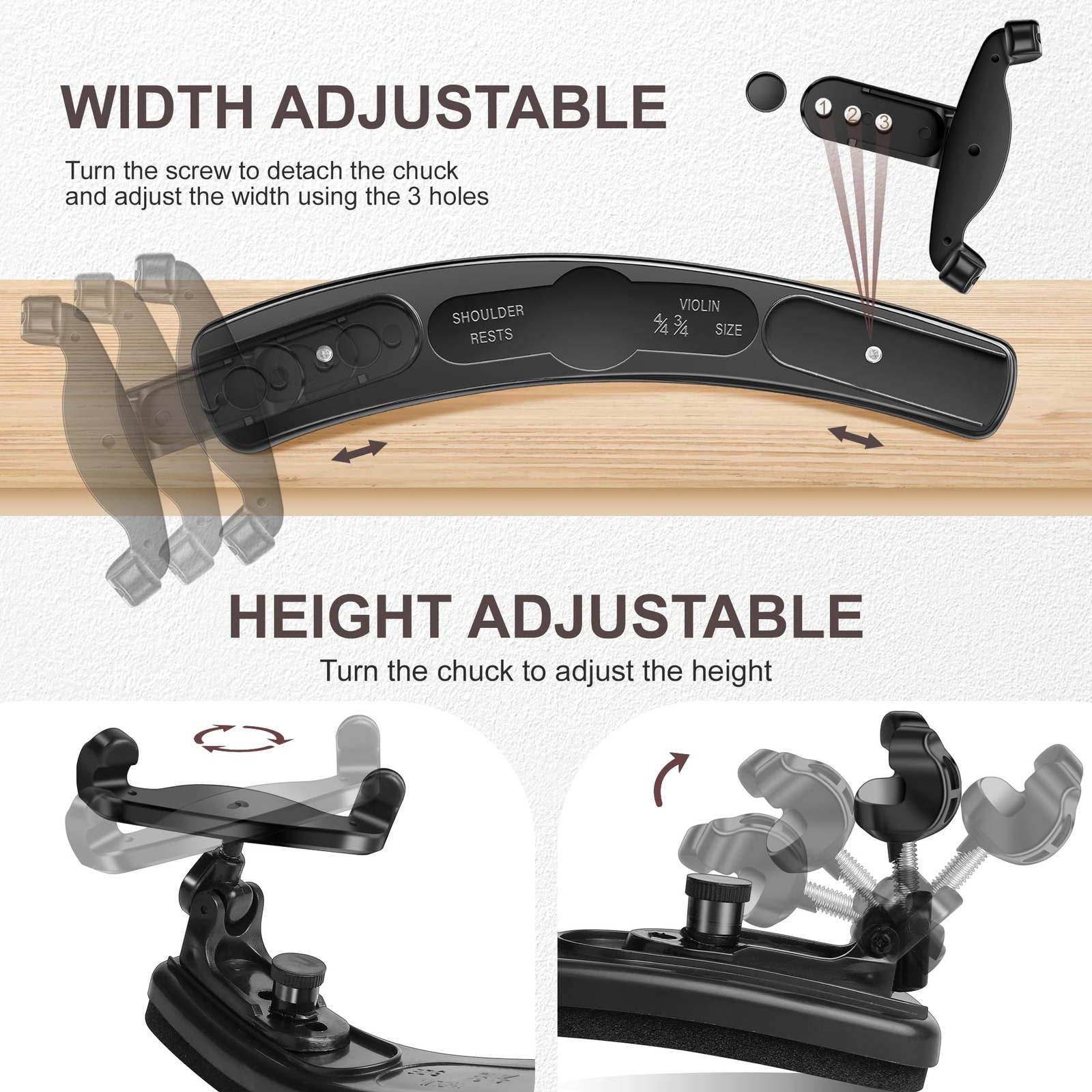 Violin Shoulder Rest for 4/4-3/4 Violins, Ergonomic 3/4-4/4, black