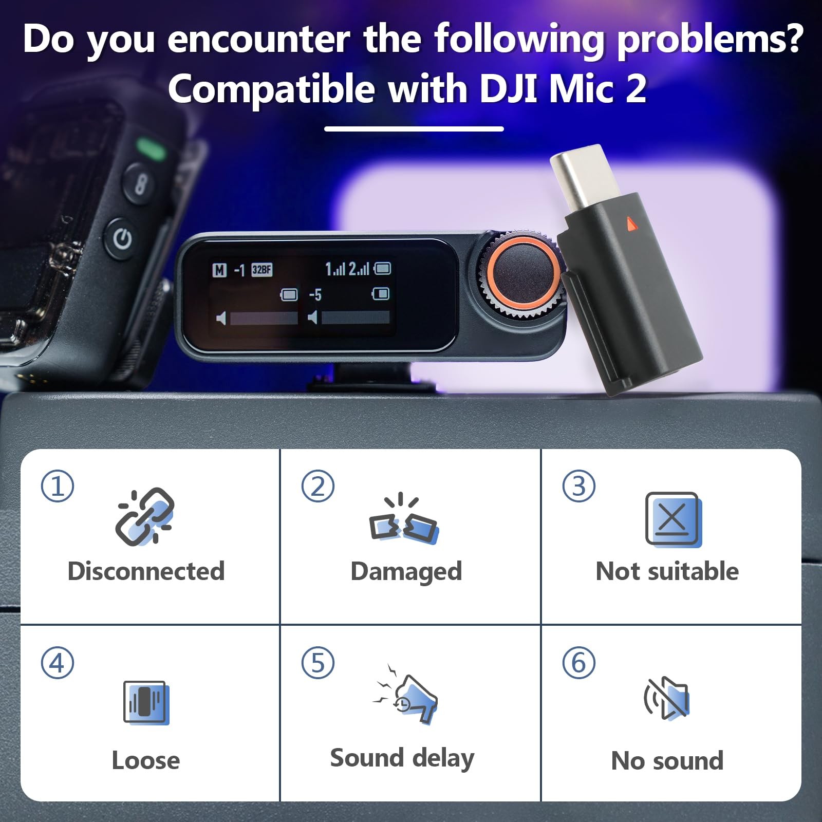 for DJI MIC 2 Adapter Type-C Phone Wireless Microphone Receiver Mic Black