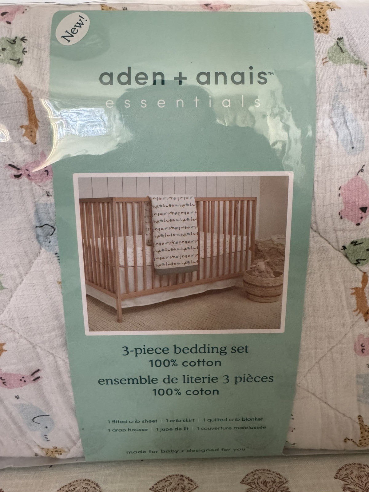 NEW ADEN ANAIS 3 PIECE 100 COTTON CRIB BEDDING SET ANIMALS ALPHABET