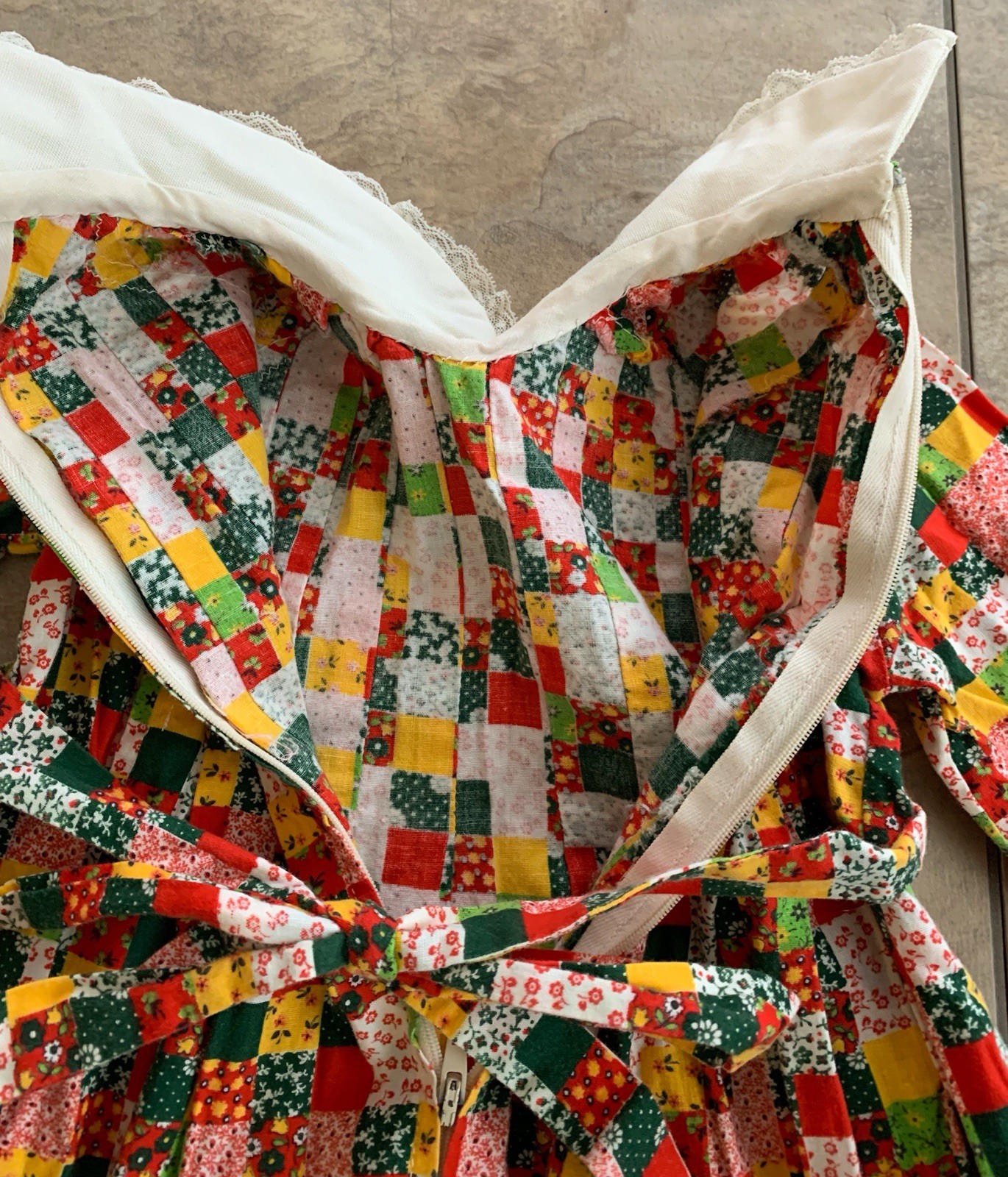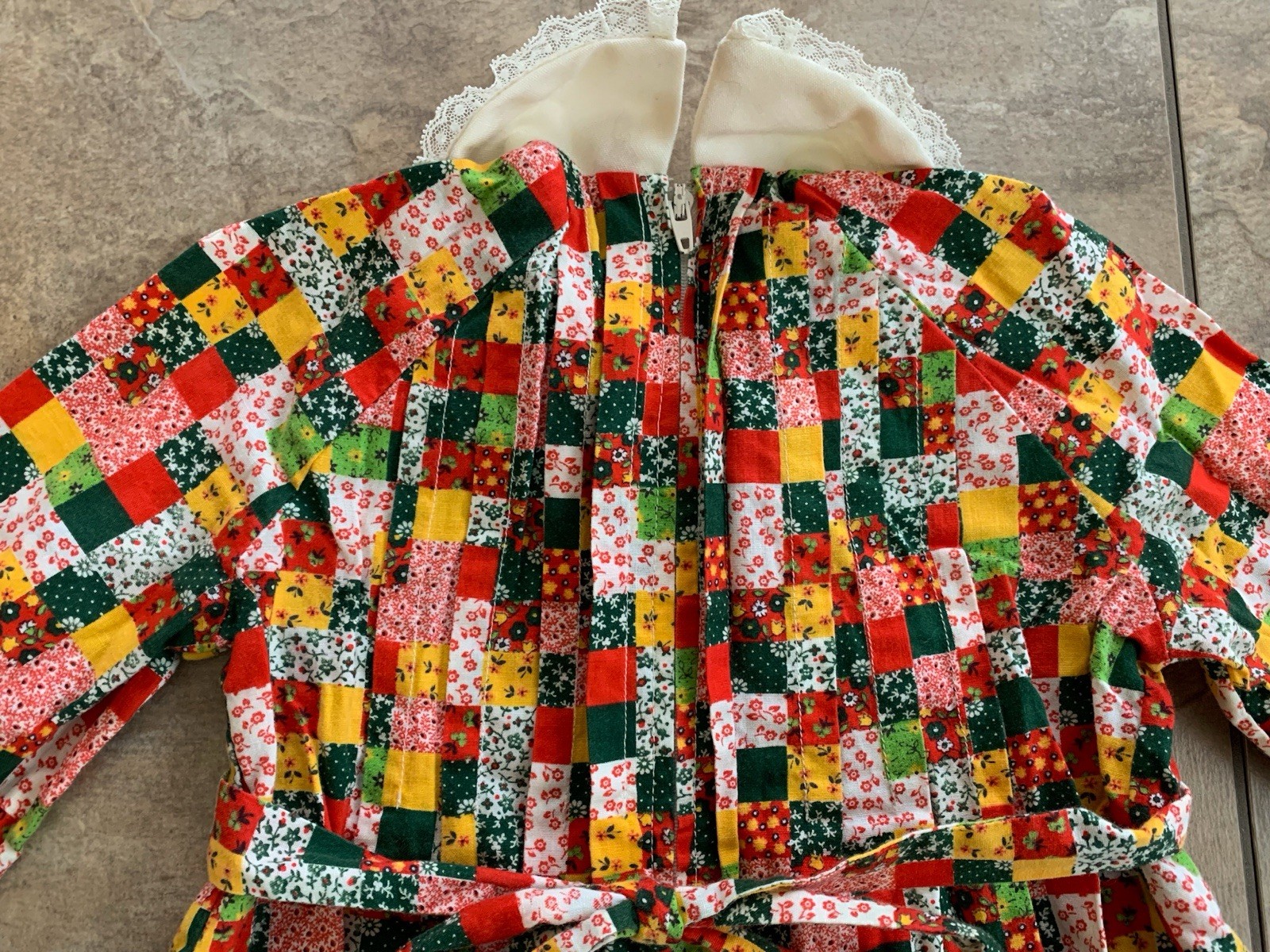 как выглядит Rare Vintage 60s 70s Girls Patchwork Calico Dress White Collar Holly Hobby Style фото