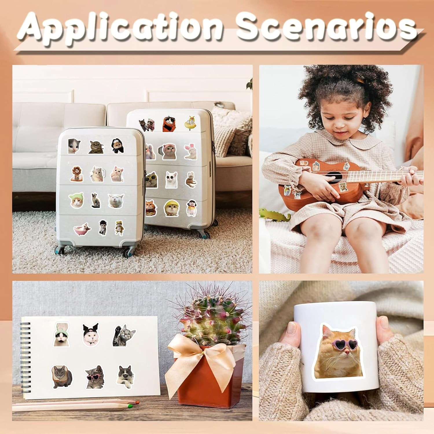 100 Pcs Funny Cat Stickers Cute Cat Meme Stickers Funny Kitten Sticker for Adult