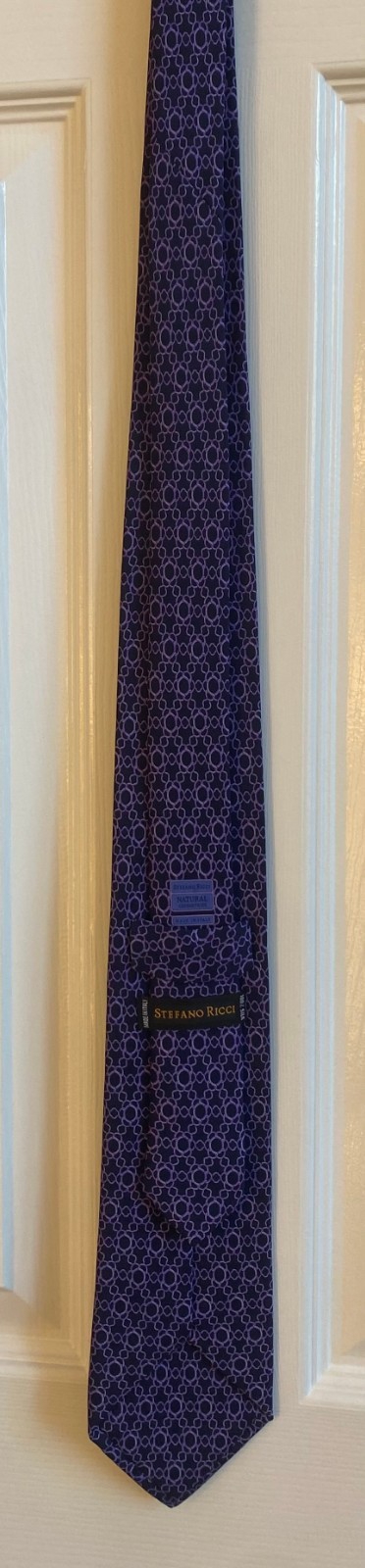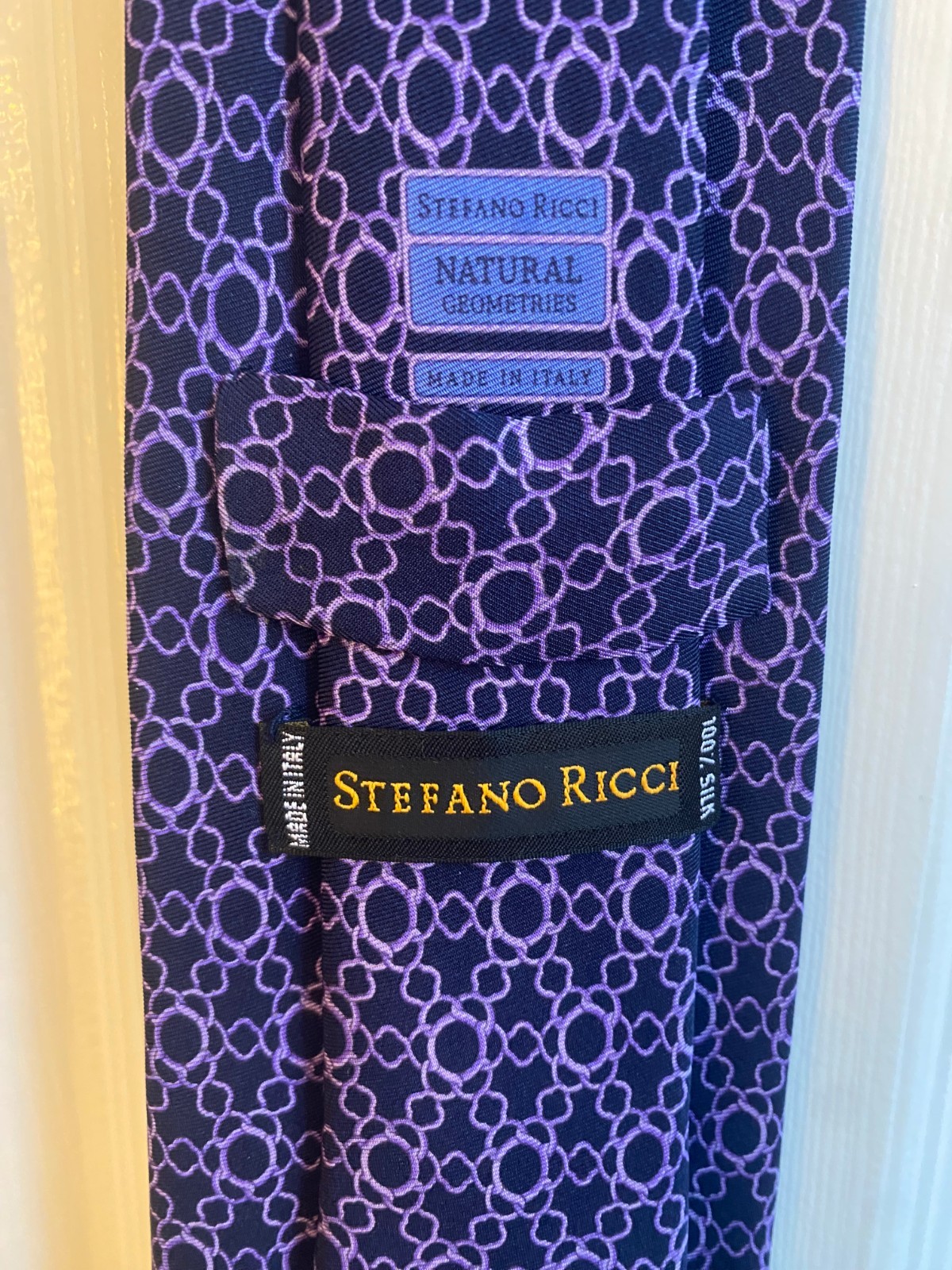 как выглядит STEFANO RICCI MENS DESIGNER SILK TIE , PURPLE/BLUE, GEOMETRIC, MADE IN ITALY фото