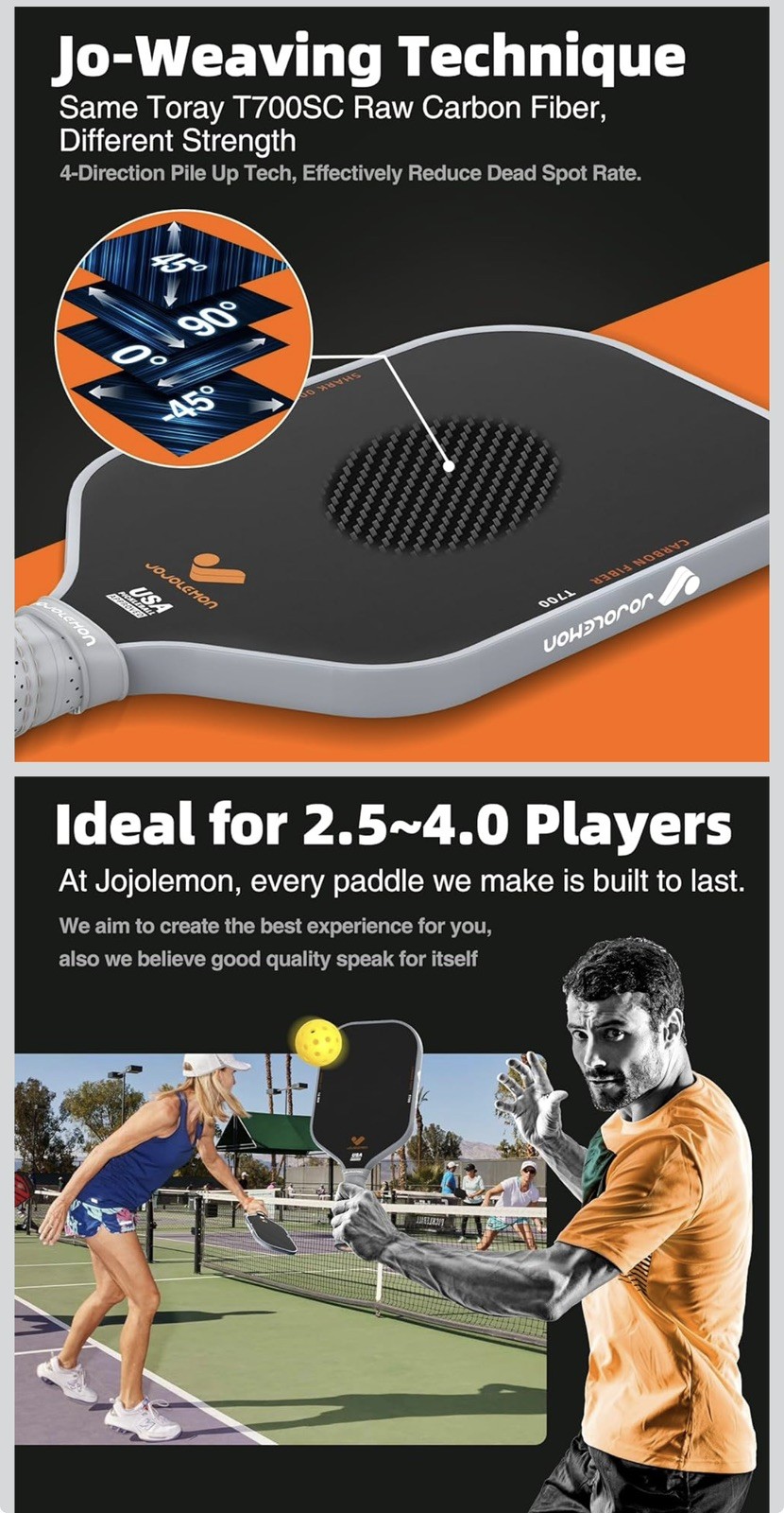 как выглядит Jojolemon Pickleball Paddle SHARK 100 - 16mm T700 3K Carbon Fiber - Black фото