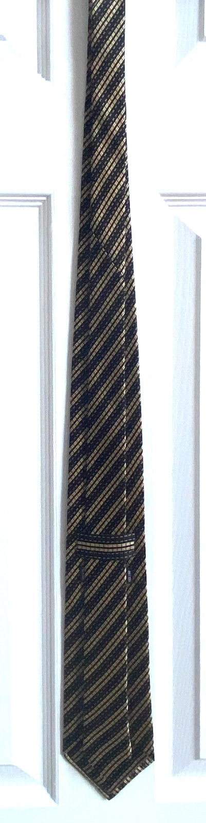 как выглядит STEFANO RICCI MENS DESIGNER SILK TIE , BLACK/GOLD, STRIPED, MADE IN ITALY фото