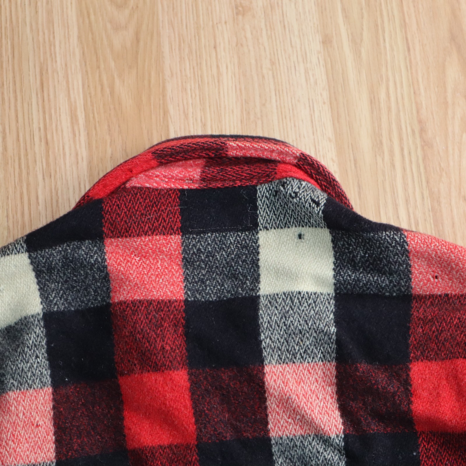 как выглядит vtg 40s 50s woolrich thick wool shirt 16 tag red plaid flannel Short Thrashed фото