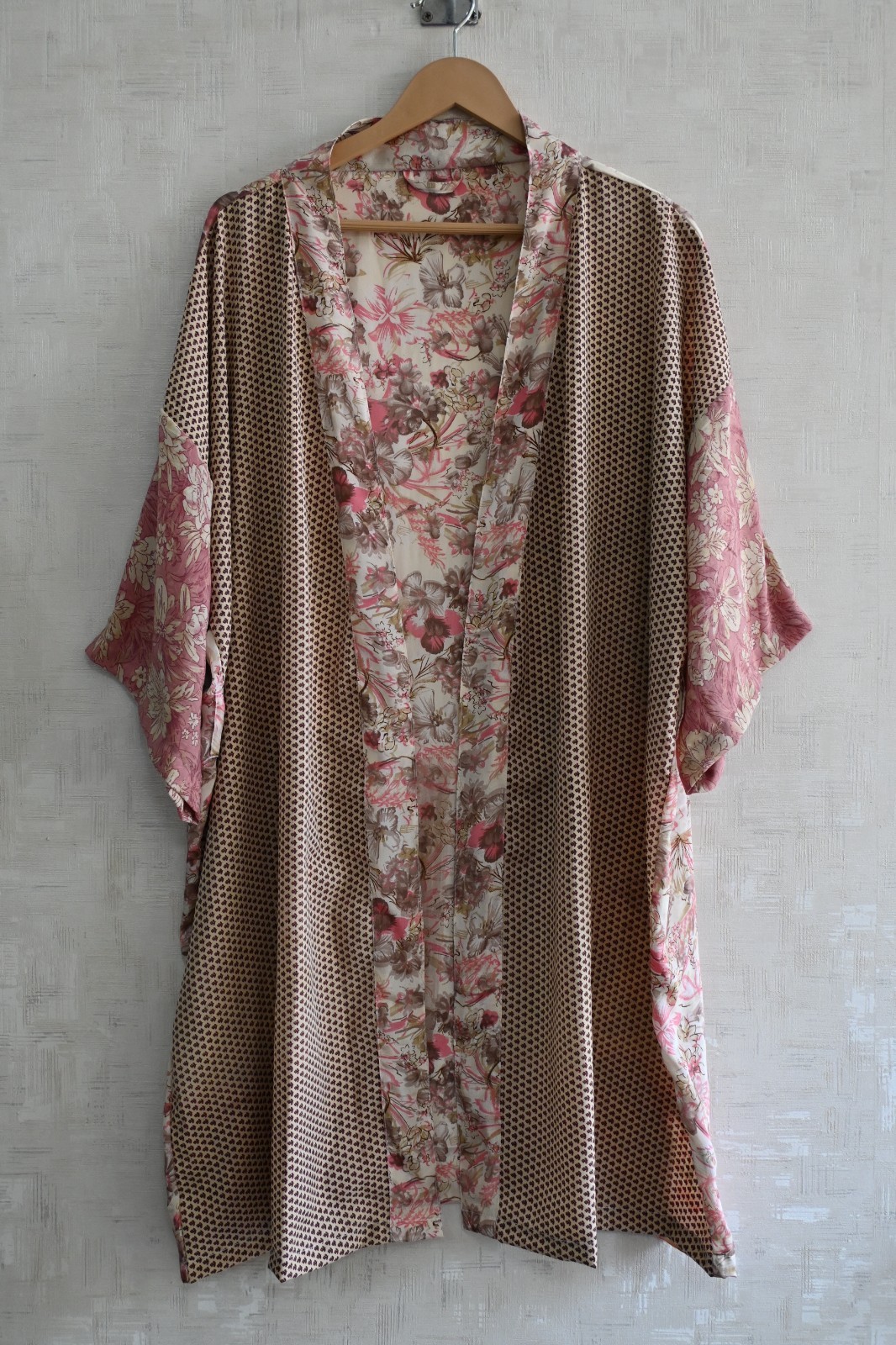 Luxury Silk Patchwork Kimono Robe for Women, Long Boho Designer Nightwear Gown