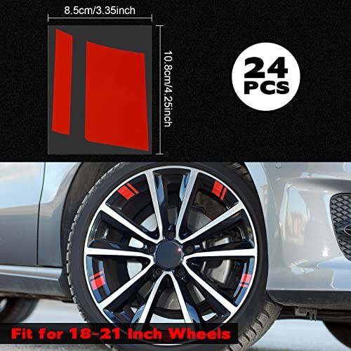 24 Pcs Wheel Rims Decal Stripes Reflective Car Stickers Wheel Hub Stickers Red