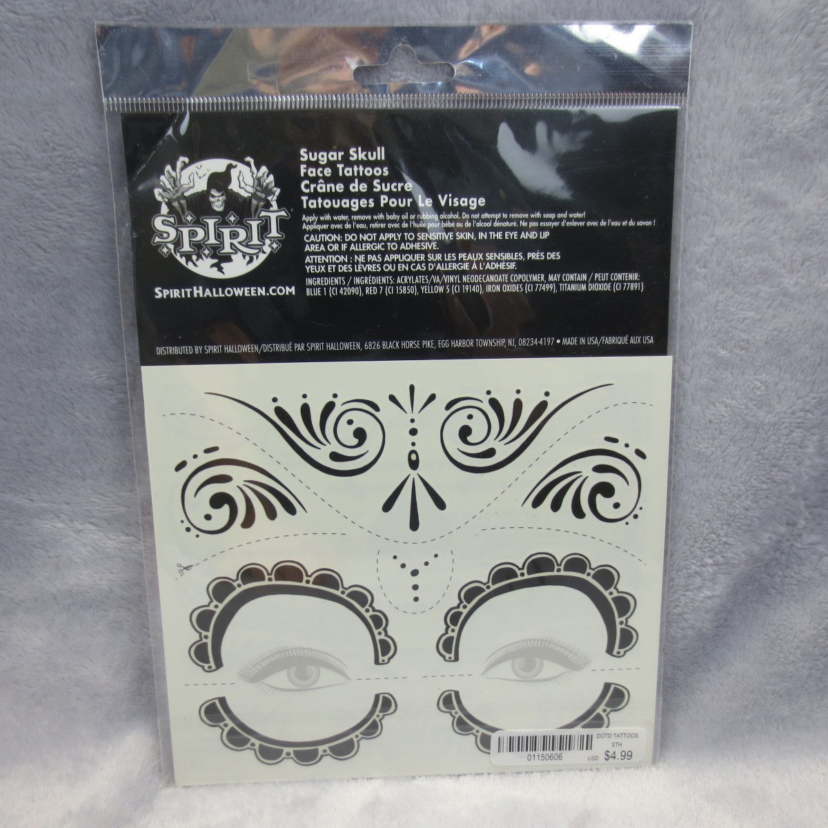 Spirit Halloween Sugar Skull Face Tattoos Day of the Dead Makeup Temporary