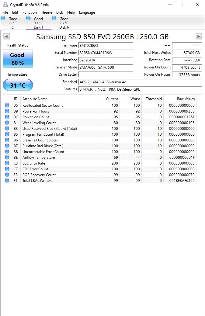 Samsung EVO 850 250GB 2.5 SATA SSD MZ7LN250HMJP MZ-75E250