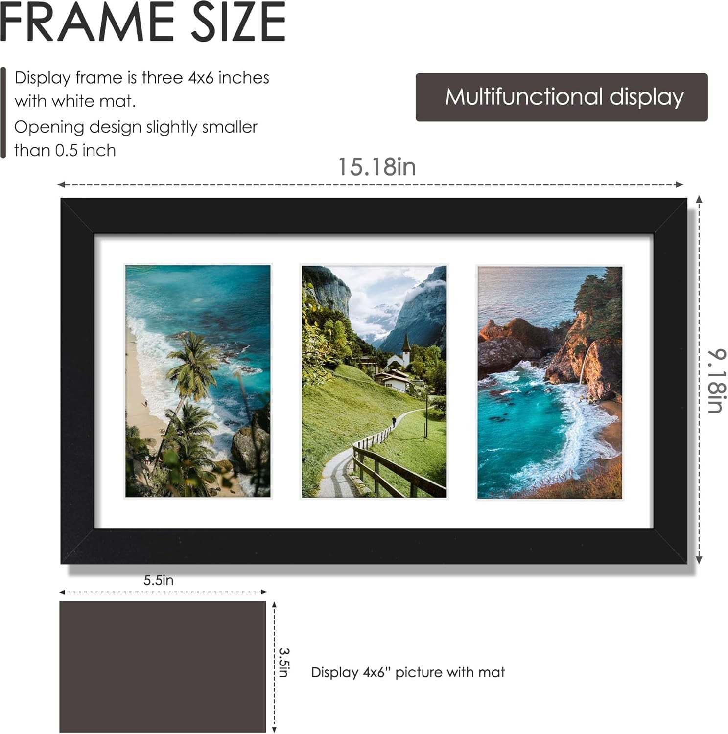 8x14 Collage Picture Frame, 4x6 Collage Picture Frame Displays Three 4x6 inch Ph