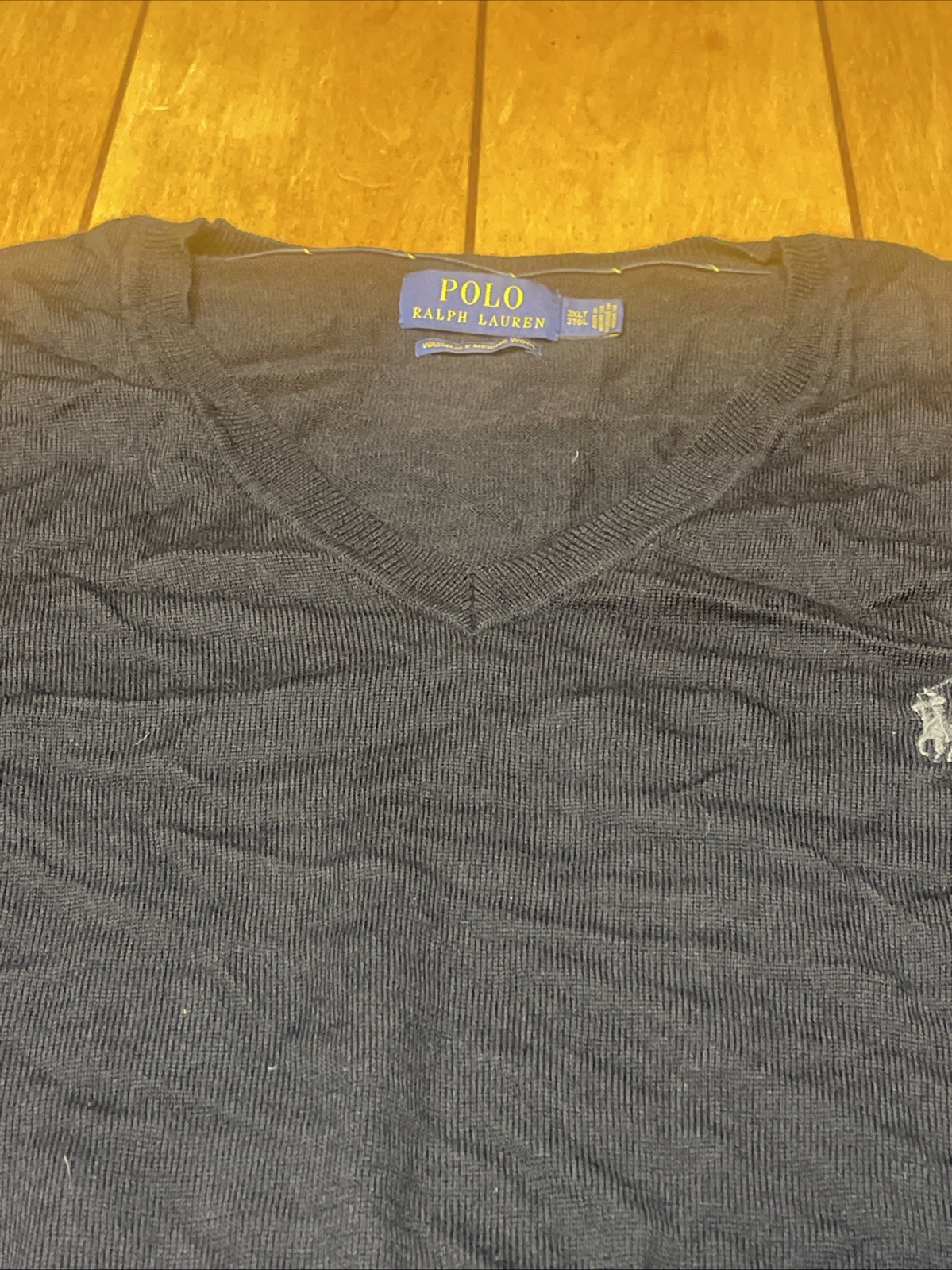 как выглядит Polo Ralph Lauren 100 Merino Wool V Neck Sweater Men s 3XLT Black Washable фото