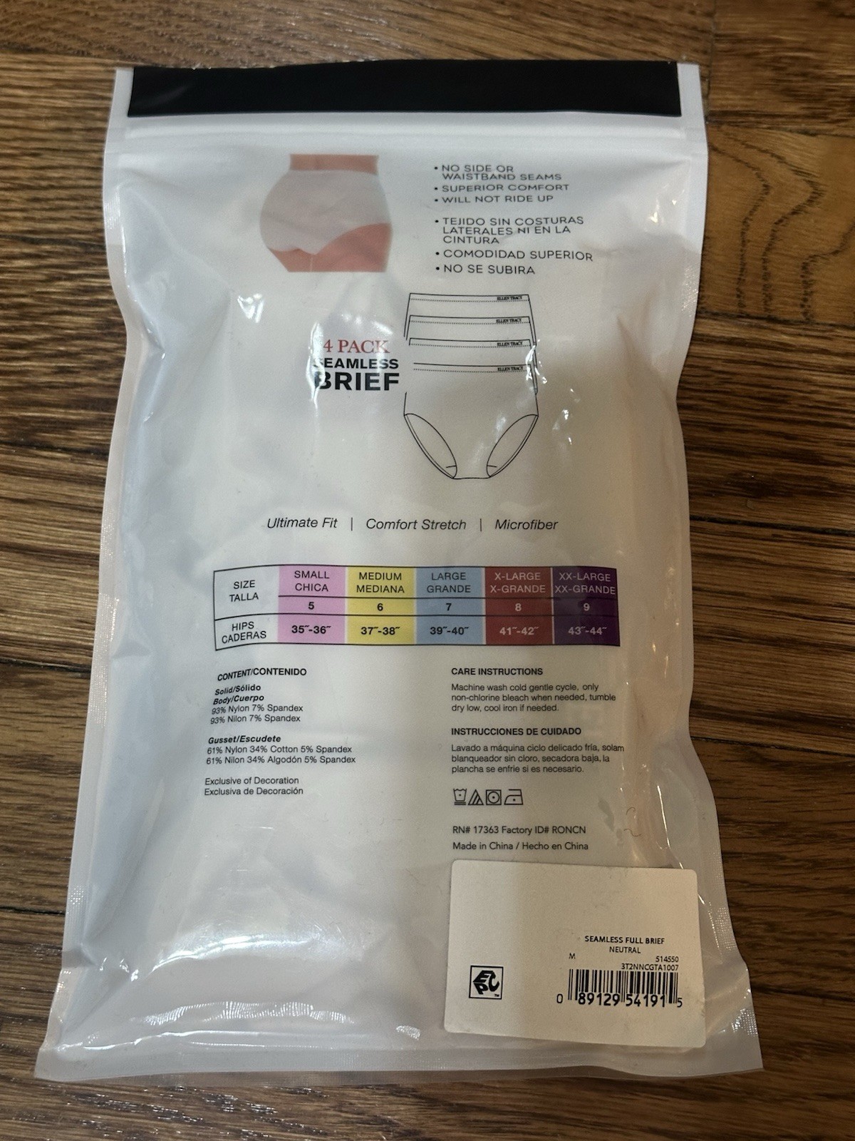 Ellen Tracy Essentials 4 Pack Seamless Brief Size Medium Beige Nude