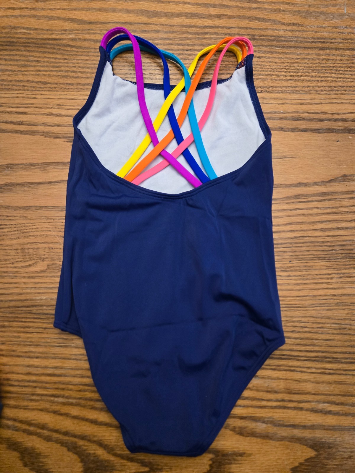 как выглядит New with Tags Mini Boden Rainbow Cross-Back Swimsuit - Size 8-9 фото