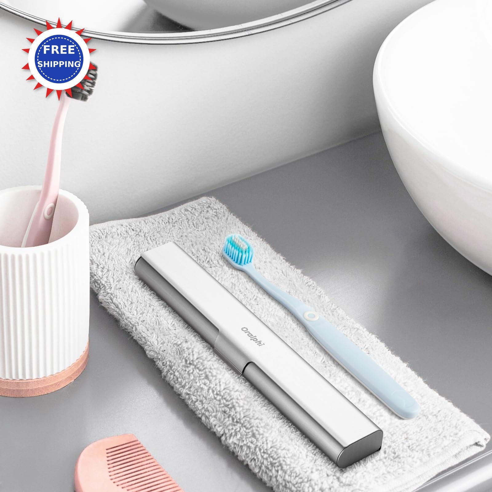 Oralphi Aluminum Toothbrush Travel Case 2 Soft Bristle Toothbrushes Portable