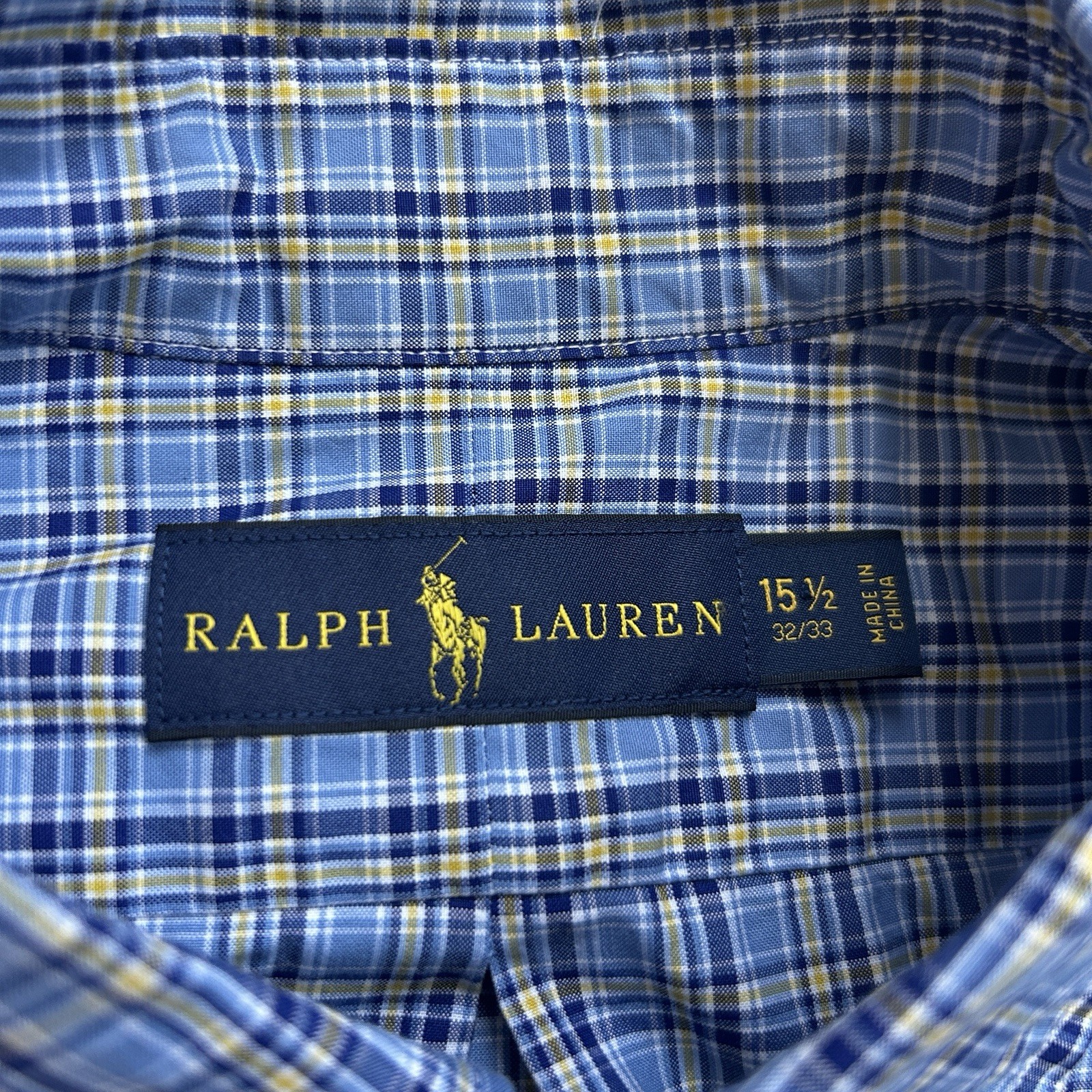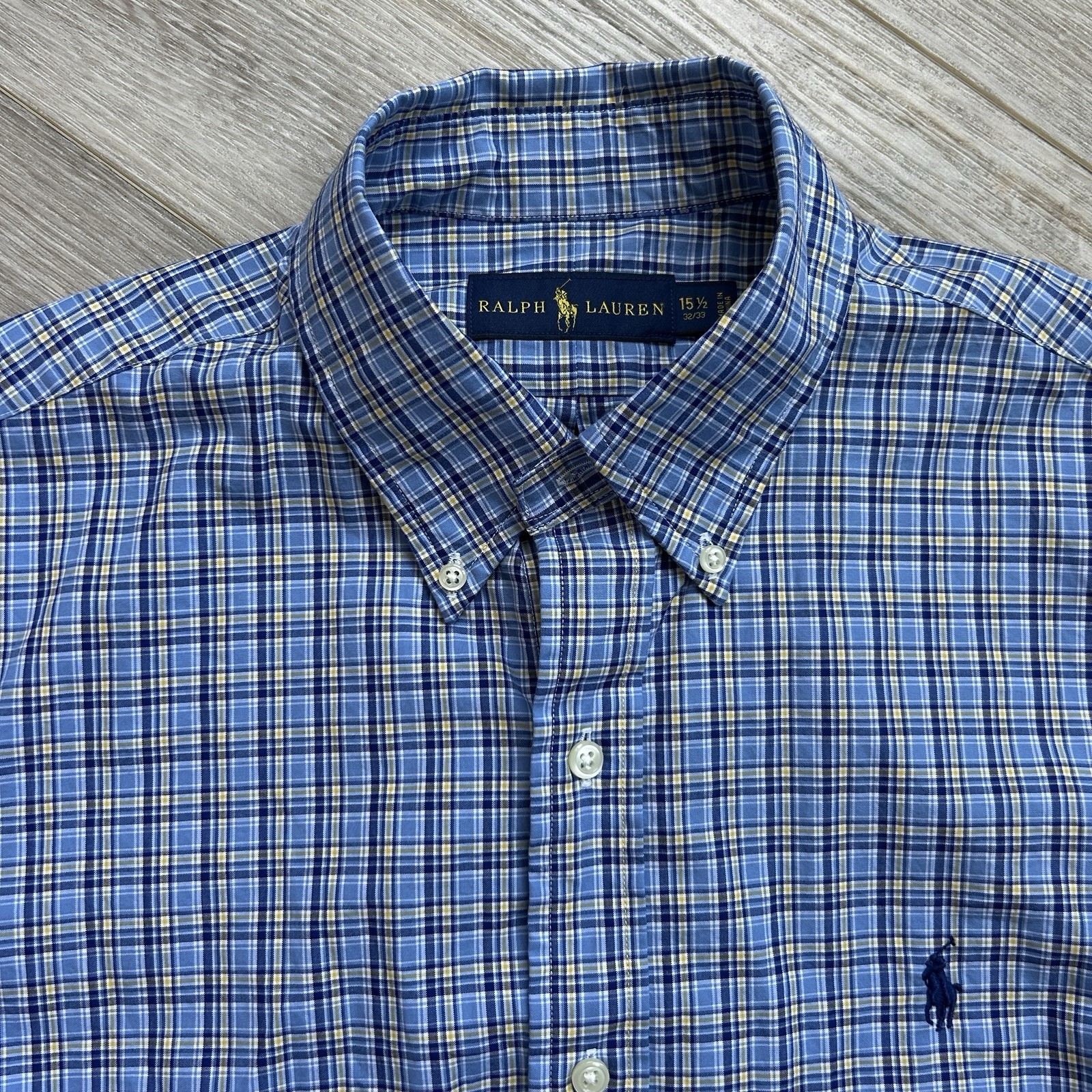 Polo Ralph Lauren Classic Fit Dress Shirt 15.5 32/33 Graph Check Blues Navy