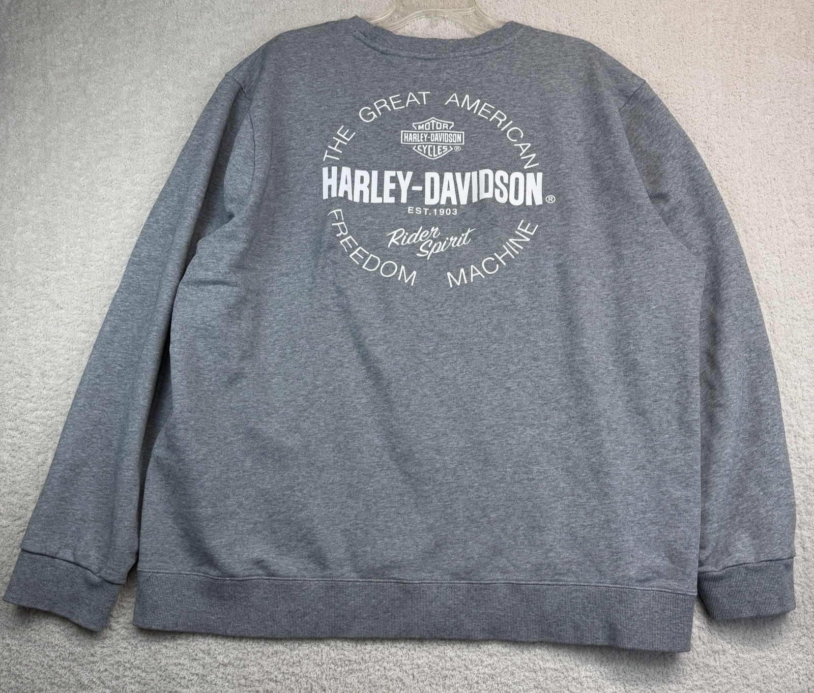 как выглядит Harley Davidson Ash Gray Crewneck Sweatshirt 2XL Slim Logo Rider Spirit Pullover фото