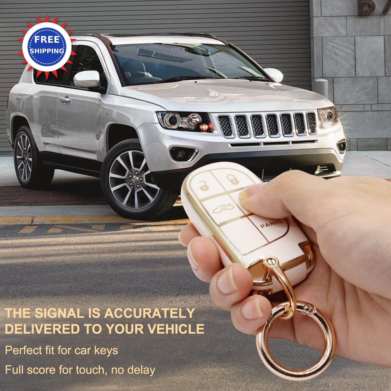 • Elegananccy for Jeep Key Fob Cover Soft Full Protection Key Case Shell with 3 4
