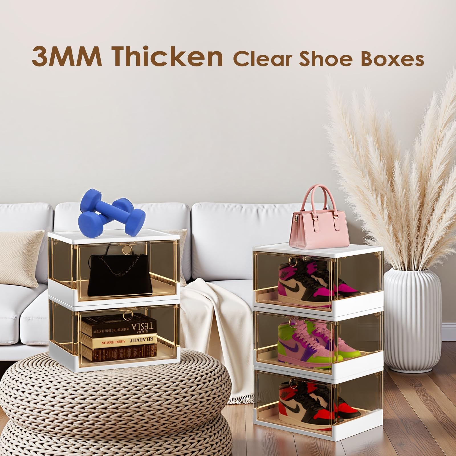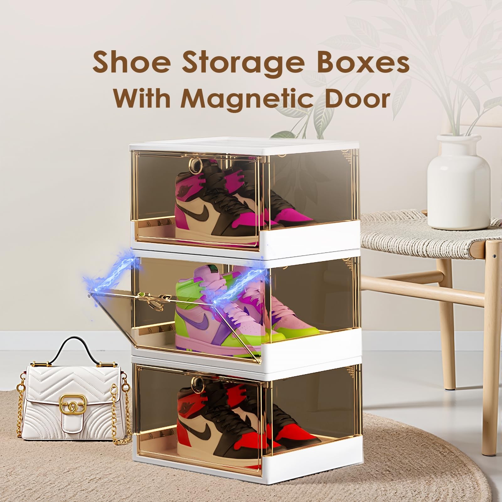 Thicken Sturdy Clear Shoe Boxes with Magnetic Door, 3 Pack Stackable Multi-...