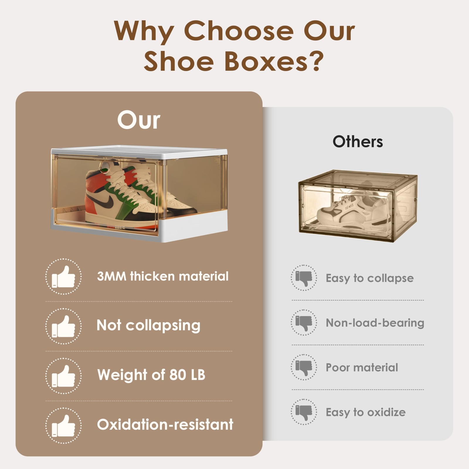 Included Components: 3 Pack Orange Clear Shoe Boxes, 1 Pcs User Manual