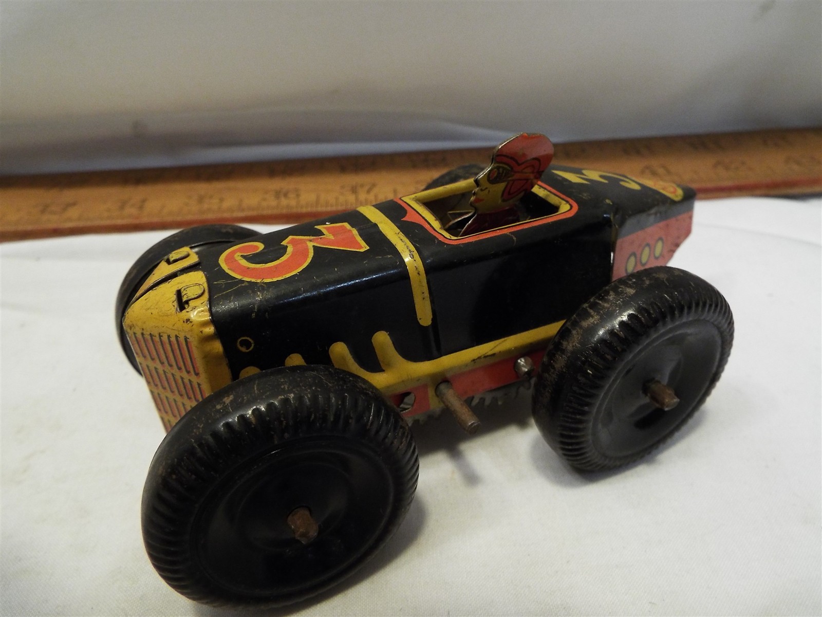 Vintage Marx Tin Litho Wind-Up Racecar Racer No. 3 Clockwork Race Car Windup