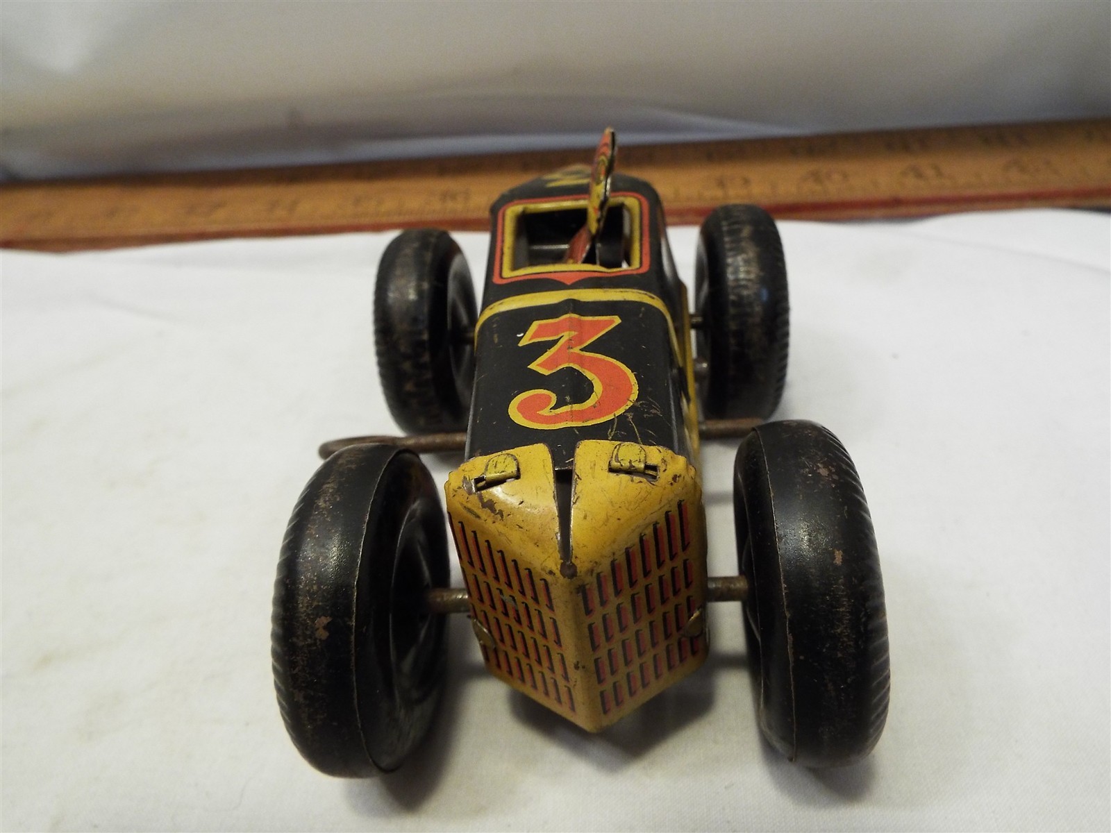 как выглядит Vintage Marx Tin Litho Wind-Up Racecar Racer No. 3 Clockwork Race Car Windup фото