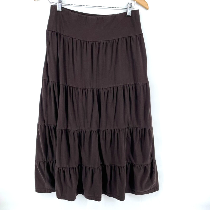 Basic Editions Boho Midi Skirt M Cotton Blend Knit Brown Pull On Tiered Peasant