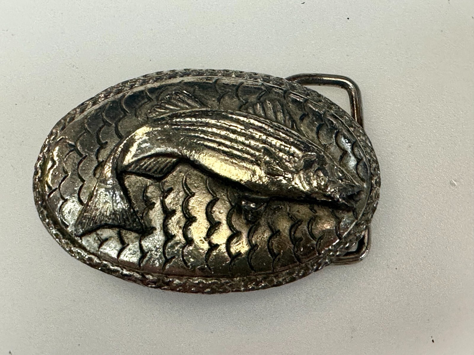 как выглядит Largemouth Bass Fishing Jumping Fish Silver Tone Small Fishermans Belt Buckle фото