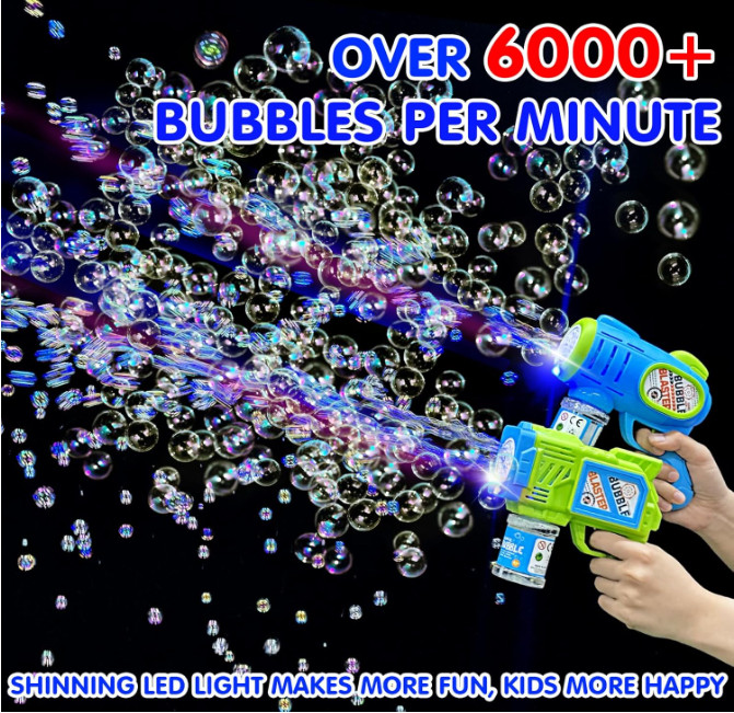 2 Pack Bubble Guns for Kids, LED Light Up Bubbles Machine Blower