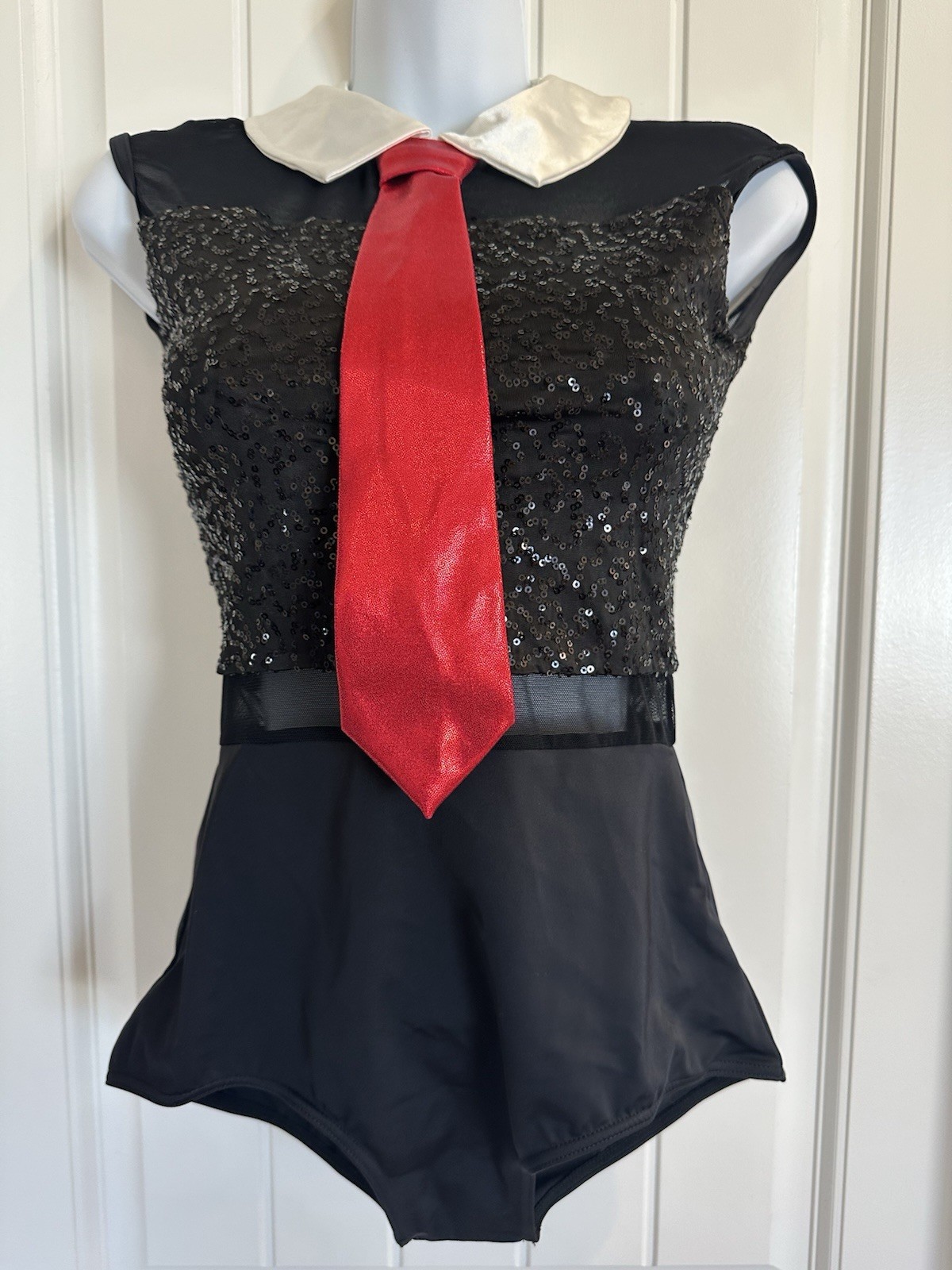как выглядит Weissman Black Red Sequined Dance Costume Adult Small фото
