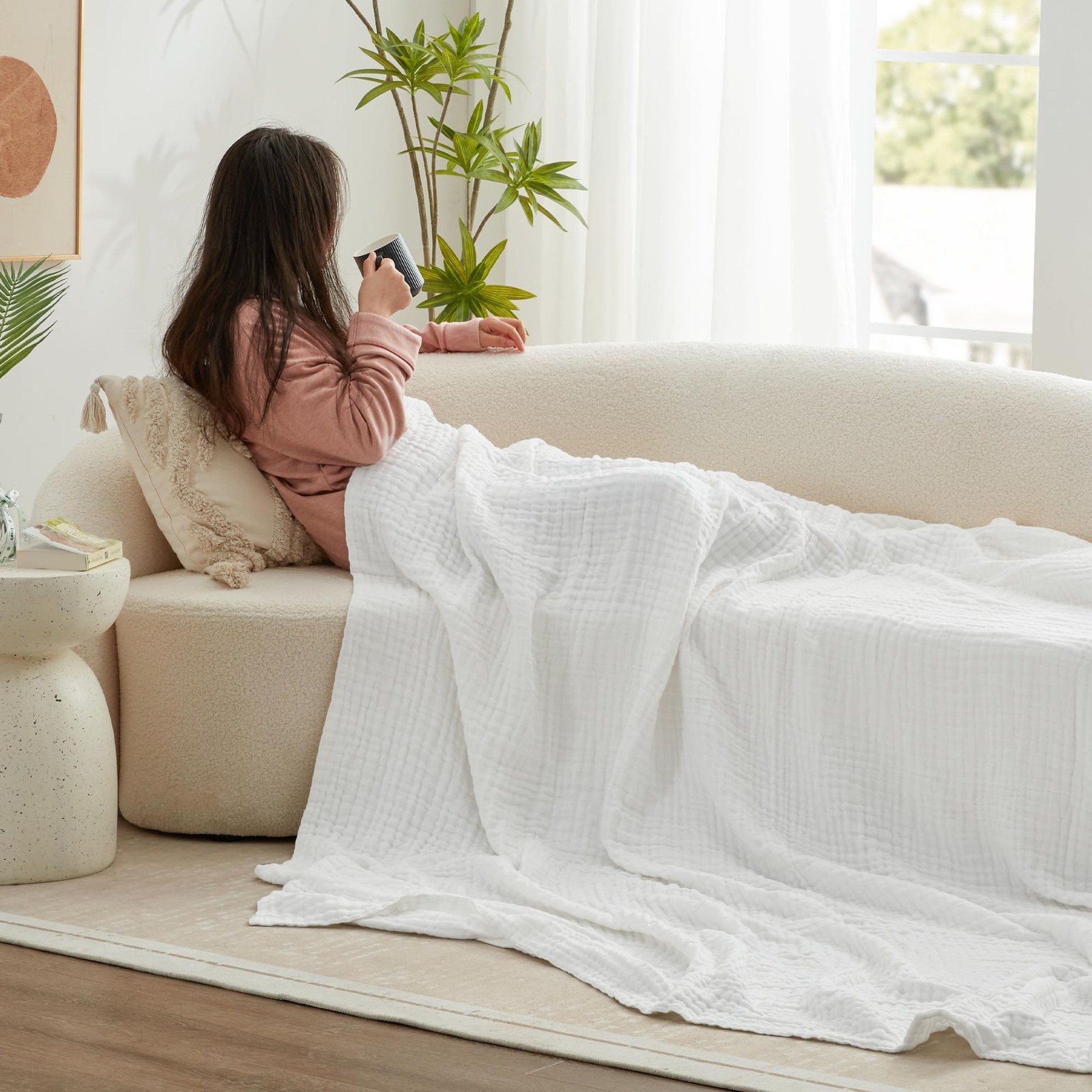 как выглядит 6 Layer 100 Cotton Muslin Blanket, 108"x90" Muslin King Size Blanket for Bed... фото