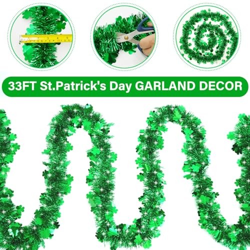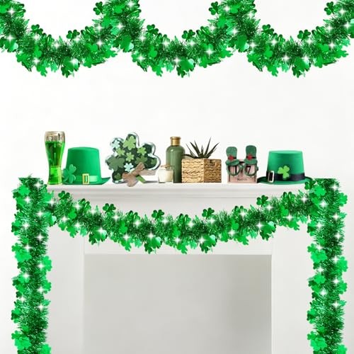 50FT St Patrick's Day Tinsel Garland Shamrock Tinsel Garland Clover Green