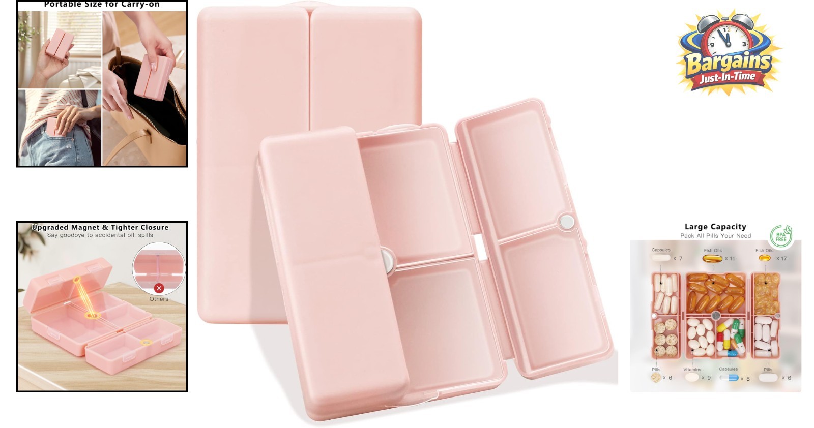Compact 7-Compartment Portable Pill Organizer - Pink Folding Travel Case