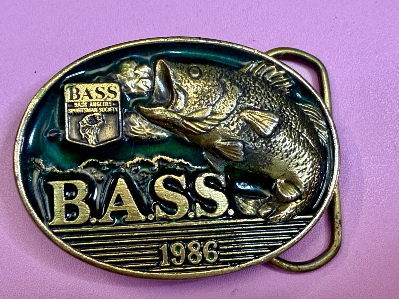 как выглядит Bass Anglers Sportsman Society Fishing Member 1986 Great American Belt Buckle фото