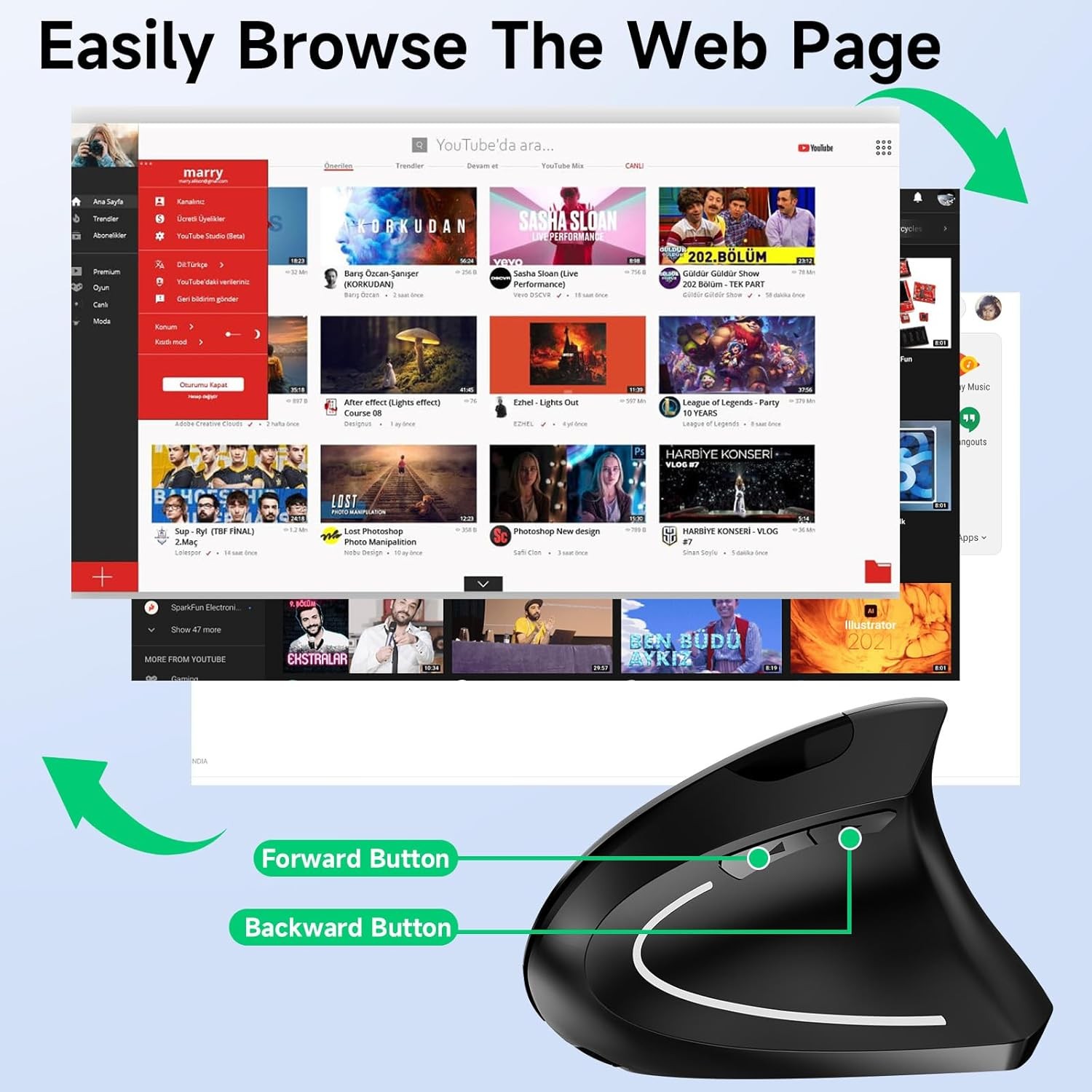 Tlkawzy Ergonomic Vertical Wireless Mouse Stylish Rechargeable 2.4G Optical Mice