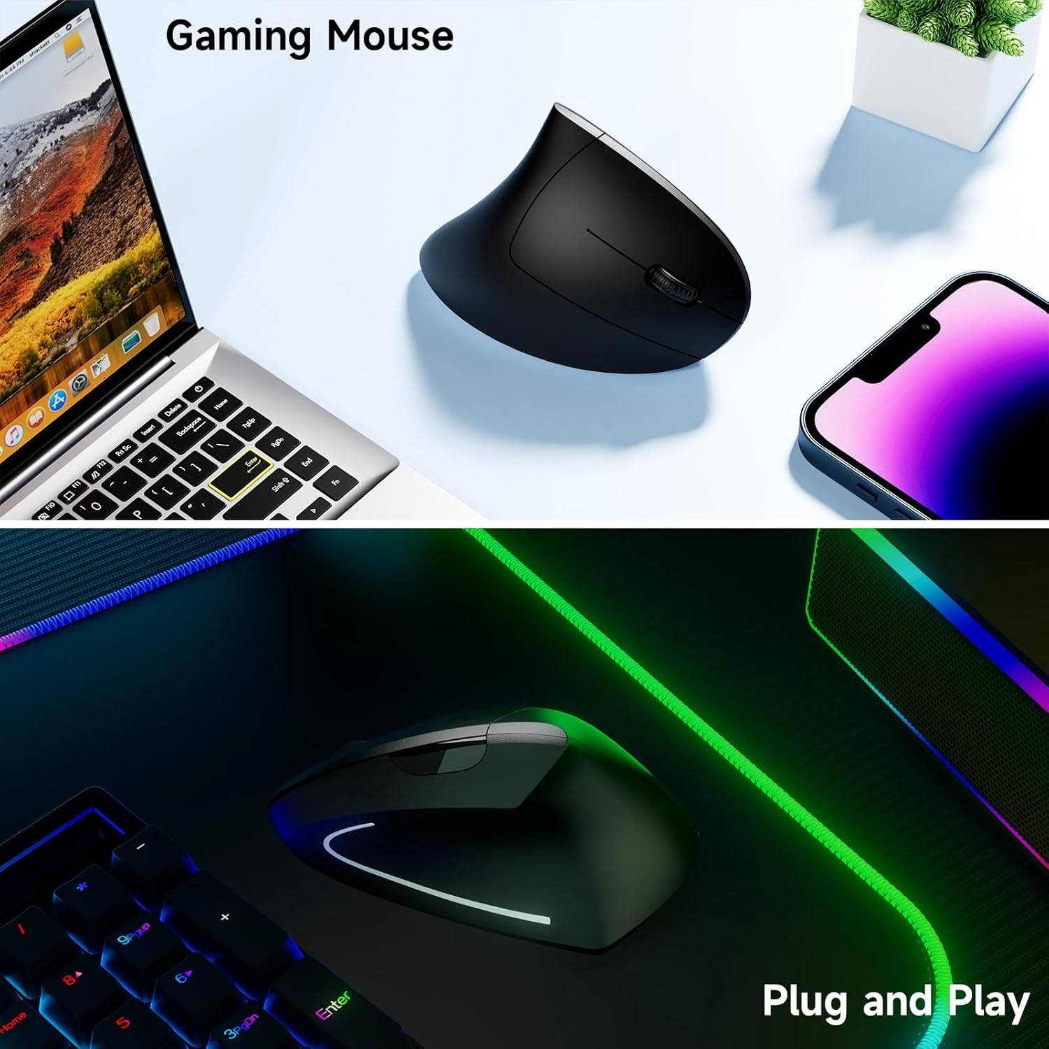 как выглядит Tlkawzy Ergonomic Vertical Wireless Mouse Stylish Rechargeable 2.4G Optical Mice фото