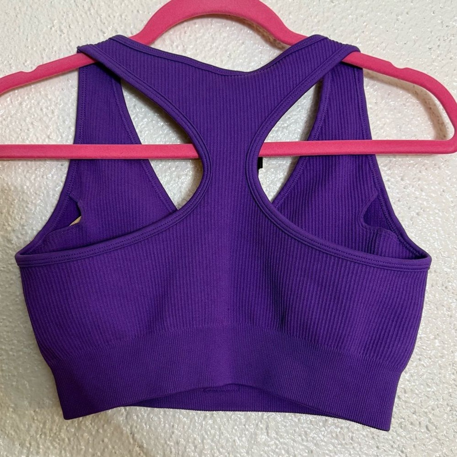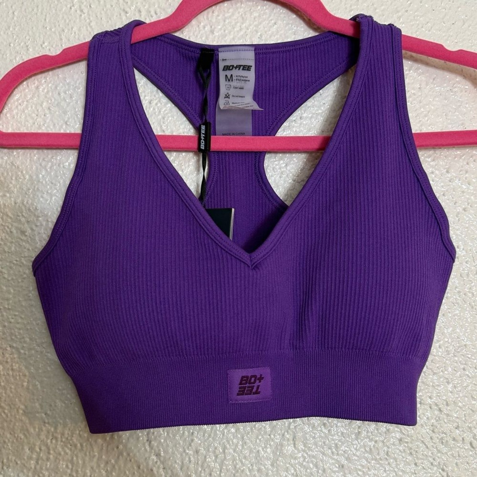 как выглядит Bo tee Vibrant ribbed Purple Racerback Sports Bra NWT size medium фото