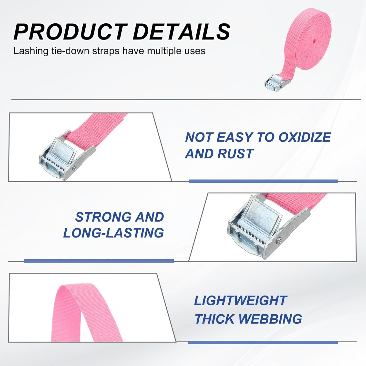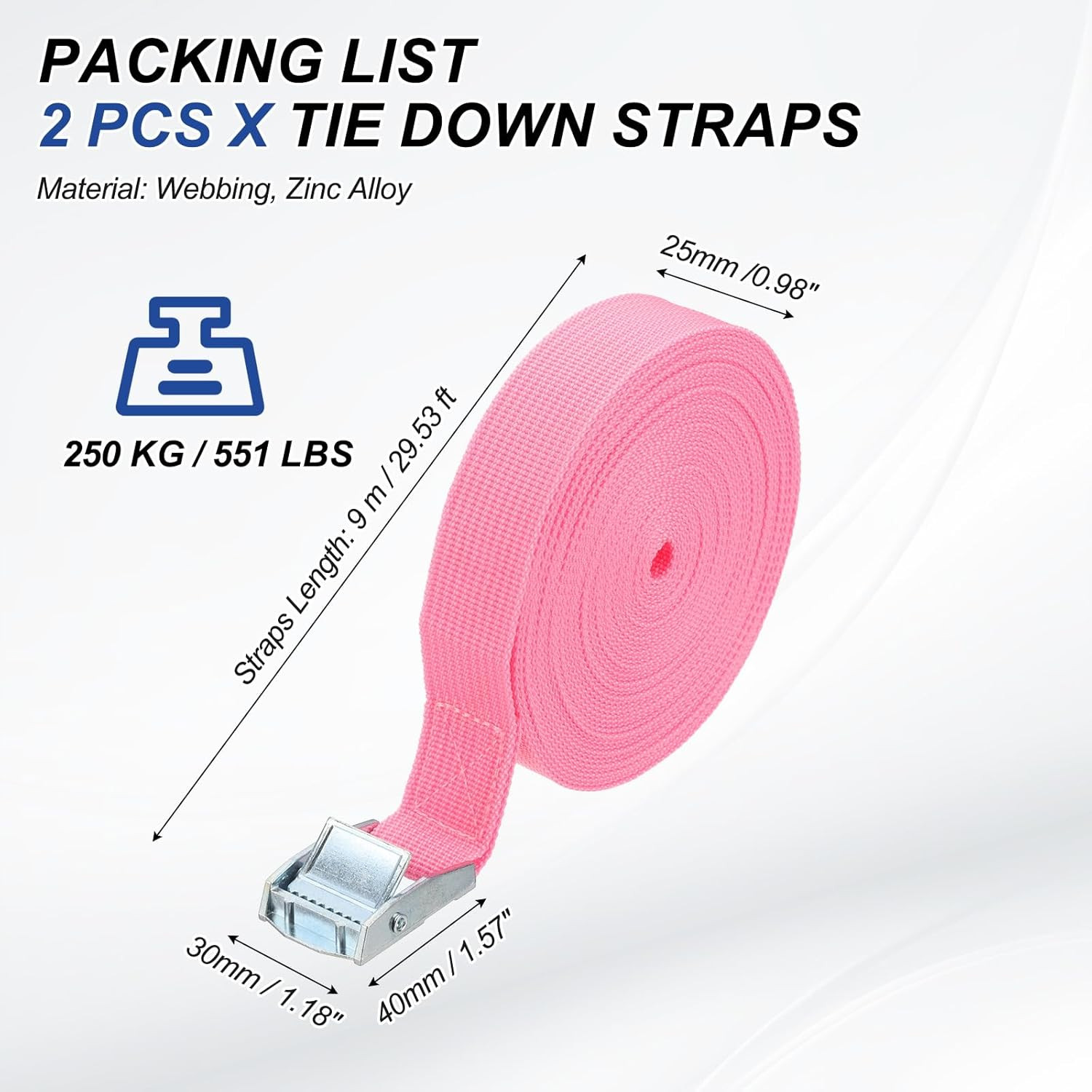 1 X 30 Ft Lashing Strap with Buckles, 2 Pcs Cam Buckle Tie down Straps Adjustab